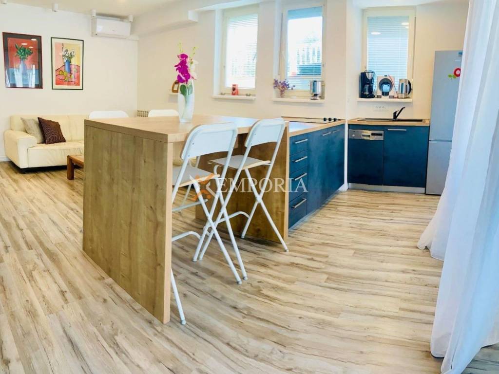 Na prodaju je namješten stan u Zadru, u naselju Diklo, smješten u prizemlju, svega 130 m od mora. Lokacija pruža mirno okruženje u neposrednoj blizini plaže, dok je centar grada udaljen 3,2 km, što omogućuje ugodnu ravnotežu između privatnosti i dostupnosti svih sadržaja.Stan ima funkcionalan raspored koji obuhvaća hodnik, dvije spavaće sobe, kupaonicu te kuhinju s blagovaonicom i dnevnim boravkom u otvorenom konceptu. Na ulazu u stan nalazi se natkrivena terasa ukupne površine 25 m², od čega je 13 m² natkriveno, idealna za boravak na otvorenom. Iz južne spavaće sobe izlazi se na dodatnu natkrivenu terasu površine oko 8 m². Neto korisna površina opisanih prostorija iznosi 64,21 m², dok ukupna neto površina s pripacima iznosi 81,71 m².Stanu dodatno pripada vrt površine oko 150 m², koji osigurava dodatni komfor i privatnost, kao i jedno parkirno mjesto.