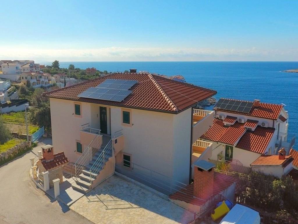Na prodaju nudimo atraktivnu apartmansku kuću u odličnom stanju, smještena na uzdignutoj poziciji s otvorenim, panoramskim pogledom na more i uvalu. Nekretnina se nalazi svega 70 metara od mora i uređene plaže s vezom za brod, što je čini idealnom kako za turistički najam, tako i za vlastito korištenje. Kuća se prostire na tri etaže i sastoji se od ukupno pet potpuno opremljenih apartmana, idealnih za turistički najam ili kombinaciju privatnog i poslovnog korištenja. Raspored: – Prizemlje: prostrani gazdinski apartman površine cca 100 m², s tri spavaće sobe – Prvi kat: dva dvosobna apartmana od po cca 60 m², s velikim lođama i pogledom na more – Drugi kat: dva dvosobna apartmana od po cca 60 m², također s prostranim lođama i otvorenim pogledom Kuća je kvalitetno građena, uredno održavana, svijetla i funkcionalna. S terasa se pruža nesmetan pogled na more, a zahvaljujući uzdignutoj poziciji privatnost je zajamčena. U sklopu okućnice nalaze se: – bazen – konoba – veliki roštilj i uređeni prostor za blagovanje i druženje – uređeni vanjski prostori idealni za goste Nekretnina je spremna za korištenje bez dodatnih ulaganja, s već izraženim potencijalom za turistički najam, ali i kao luksuzna obiteljska kuća na moru. Izvrsna lokacija, pogled koji se ne može zakloniti i blizina mora čine ovu nekretninu vrhunskom investicijom.