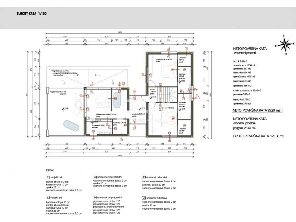 Kat se sastoji od tri spavaće sobe s vlastitim kupaonicama garderobama i prostrane terase.