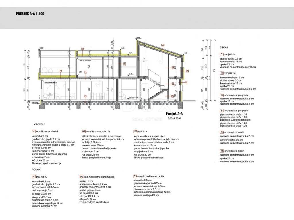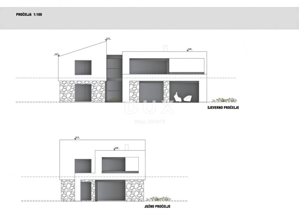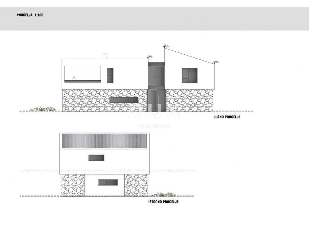 Kuća svojom suvremenom arhitekturom ne remeti okoliš već stvara sinergiju prirodnog okruženja i modernog dizajna. Definirana je kao jedna stambena jedinica čija je površina raspoređena kroz dvije etaže; prizemlje i kat.