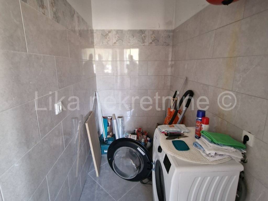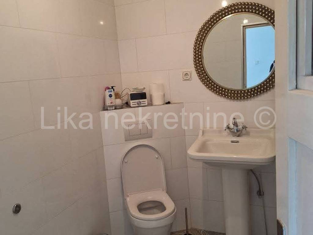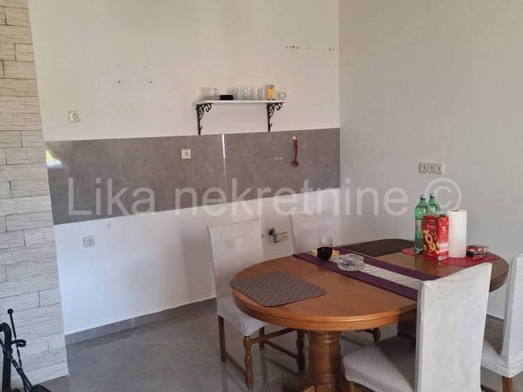 Stan je tik uz rijeku Gacku i kameni most te šetnicu. Ima veliki vrt u koji se dolazi iz stana iz spavaće sobe. Lijepi pogled na rijeku Gacku. Stan je uređen, sve izmjenjeno od struje, vode, uvedeno centralno etažno grijanje na drva, ispod stana je podrum u sklopu dvorišta, potkrovlje je katođer moguće izrediti u stambeni prostor. Stan je polunamješten i zahtjeva manja ulaganja. Na kući bi trebalo urediti fasadu i izmjeniti krov u limu pošto je kuća pod zaštitom konzervatora iz 1911. godine. Krov je za sada uredan i ne prokišnjava. Izmjenjena stolarija PVC. Lokacija vrlo dobra, blizina Lidla, Osnovne škole i centra grada 500 m.