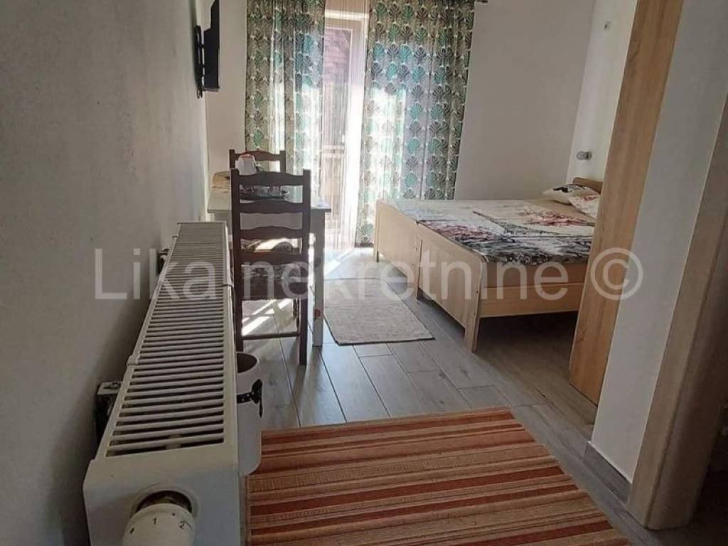 OTOČAC - Stjepana Radića, soba 20 m2 s kupatilom - bez kuhinje, u sobi dva ležaja međusobno povezani - postoji mogućnost i zasebno dvije osobe, veliki ormar za robu, noćni ormarići uz krevet, LCD televizor na zidu, u sobi mali stol s dvije stolice, hodnik, balkon sa stolićem i dvije stolice sunčana strana, komplet namješteno, ADSL / TV / Internet, parking u dvorištu za osobni automobil ( punjač za EV Tesla - gratiss ), pomoćni objekt za ostavu stvari ( bicikl, i slično), na vanjskoj terasi veliki roštilj - gril, stol za 8 osoba, puno zelenila, mir tišina, pogodno za studente i radnike. Obvezna prijava na MUP - boravak, i u poreznu, ugovor o najmu. U cijenu najma uključene sve režije. Zasebni ulaz s vanjske terase. Samostojeći objekat.