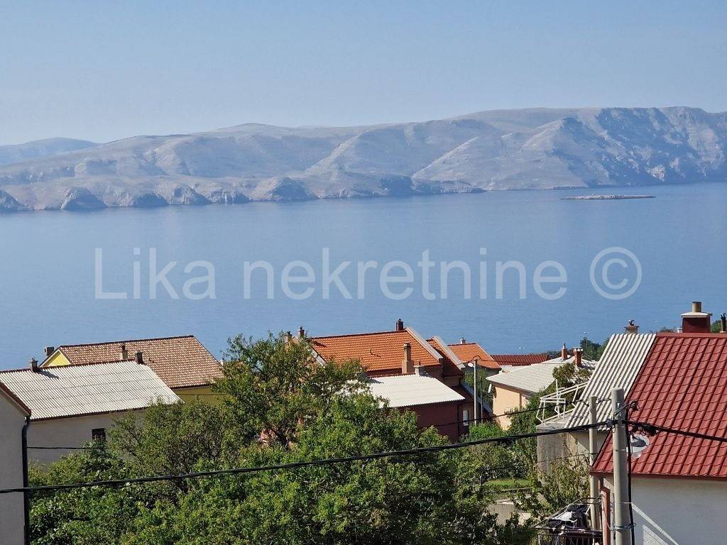 SENJ - Trbušnjak - stambena zgrada na 3 etaže, 3 stambene jedinice, etažirani stanovi, prodaje se prvi i drugi kat, zasebni ulaz, pogled more, od mora i plaže udaljeno 500 metara, veliki balkoni, okućnica, parking ispred kuće za 10 automobila.