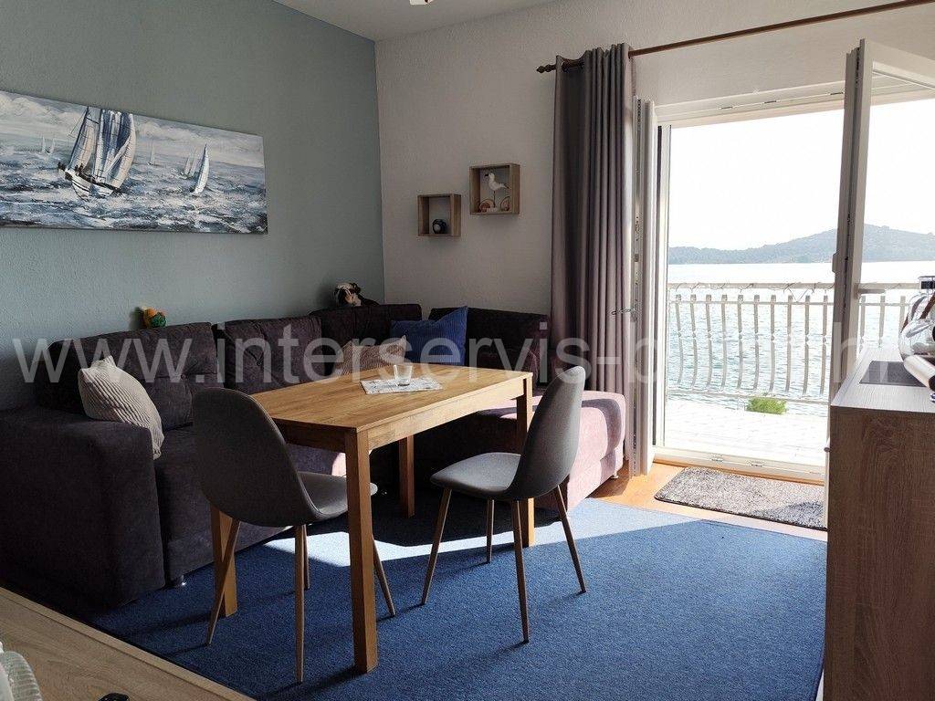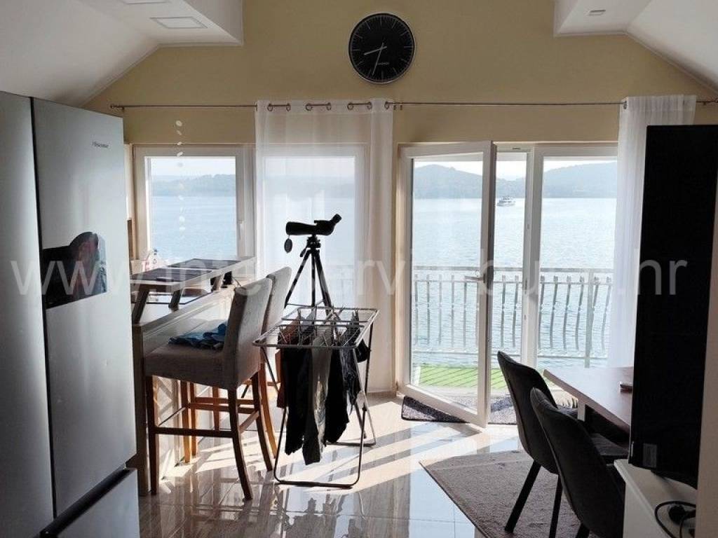 .::: Kuća sa 4 stana uz Prokljansko jezero :::. Na mirnoj lokaciji u Bilicama, u 1. redu do Prokljanskog jezera, prodaje se samostojeća, obnovljena dvokatnica, smještena na parceli od 454m2. Kuća raspolaže sa 252m2 korisne površine te 4 stambene jedinice. Prizemlje se sastoji od dva jednosobna apartmana od 33m2 s izlazom u dvorište. Poseban ulaz preko vanjskog stubišta vodi do stanova na gornjim etažama. Na 1. katu nalazimo lijepo uređen 2-sobni stan od 65m2 s dva balkona i terasom. Stan u visokom potkrovlju ima 62m2 s dvije sobe, balkonom i terasom. Svi stanovi pružaju fantastičan, nesmetan pogled na jezero. Okućnica je uređena i u cijelosti ograđena, parkirni prostor je popločan a dvorišna terasa s ležaljkama pruža savršen komfor obzirom da je plaža izravno ispred kuće. U tijeku je i izgradnja grijanog bazena dimenzija 8m x 4m. Kuća se nalazi u mirnom i tihom okruženju i idealna je nekretnina za odmor. Obilazak nekretnine moguć je uz prethodni dogovor i rezervaciju termina (minimalno dva dana unaprijed). Molimo pri telefonskom kontaktu obavezno navesti šifru objekta (ID nekretnine). Radujemo se Vašem pozivu.