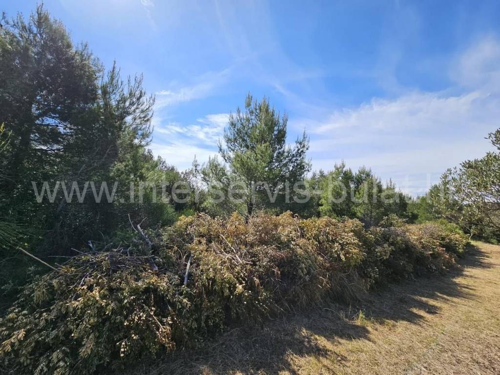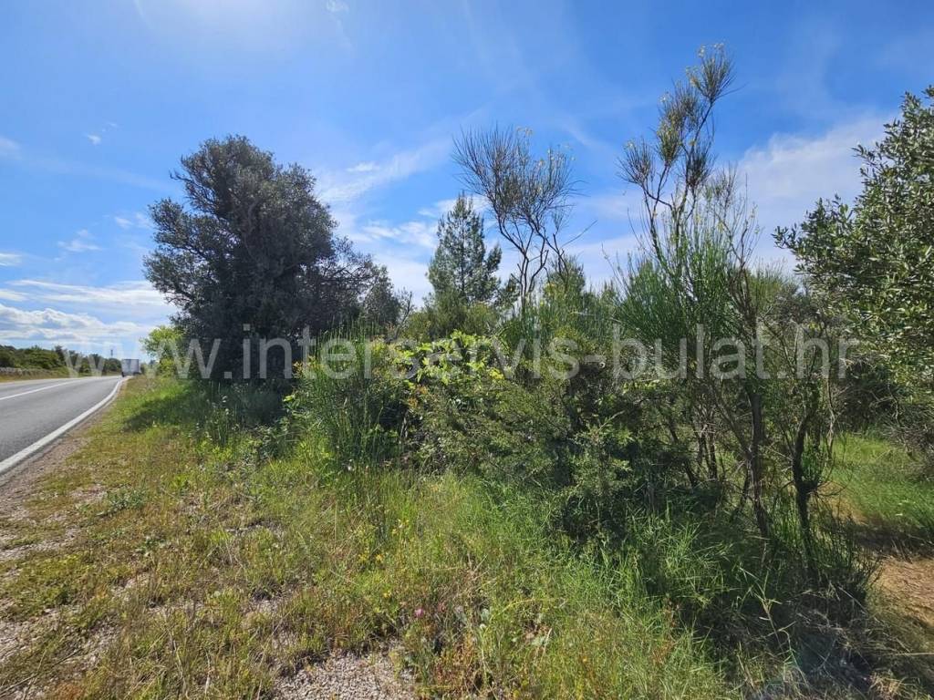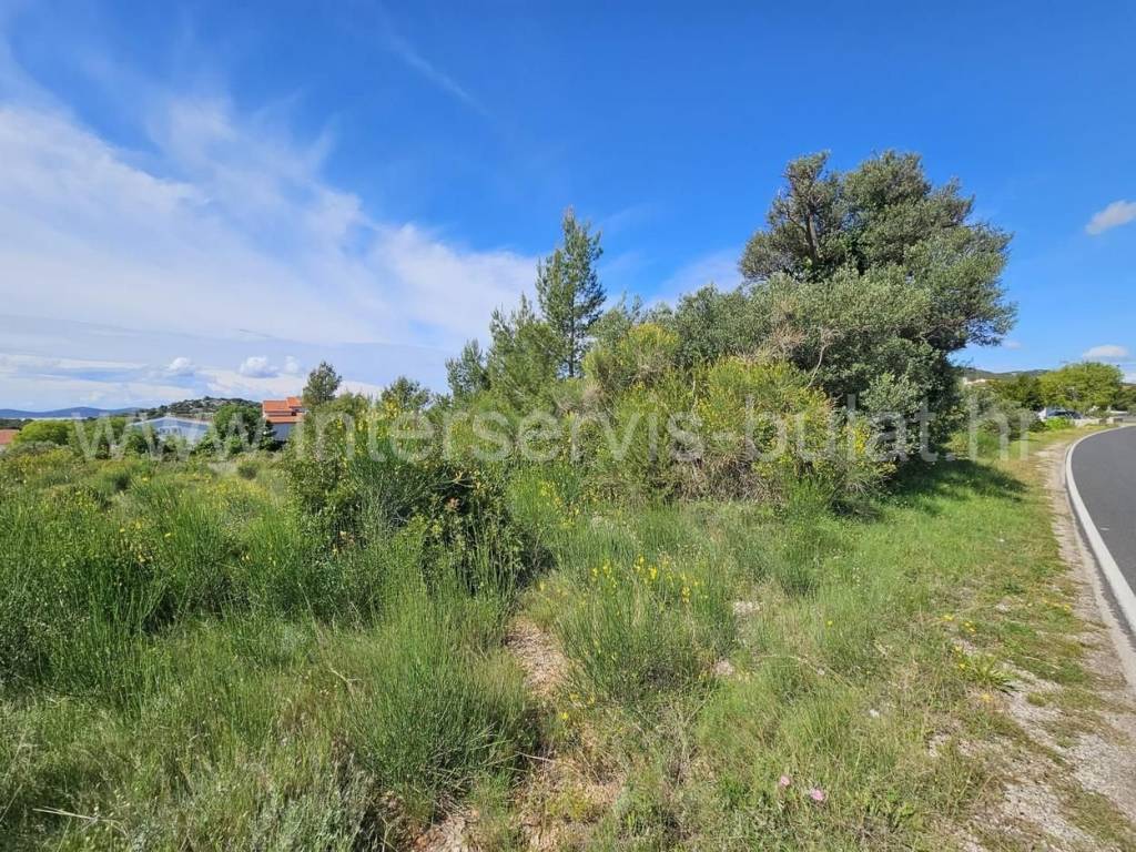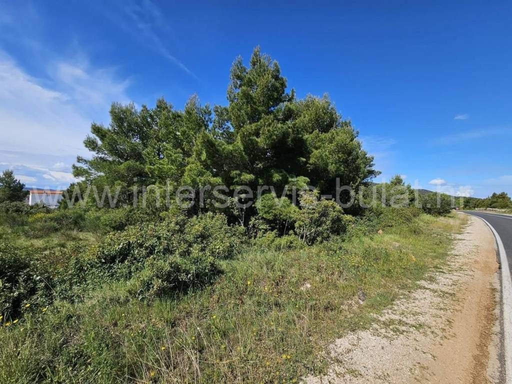 .::: Lijepo građevinsko zemljište u Tribunju :::. Uz samu glavnu cestu u Tribunju smješteno je prostrano građevinsko zemljište površine 1.927m2. Parcela je pravilnog oblika koja se uz put proteže oko 23m, dok je u dubinu terena oko 79m. Obrasla je borovom šumom i visokim raslinjem. Sa samog terena se pruža mali pogled na more. U neposrednoj blizini terena su sagrađene kuće tako da je sva infrastruktura prisutna. More je udaljeno svega 350m zračne linije. Obilazak nekretnine moguć je uz prethodni dogovor i rezervaciju termina (minimalno dva dana unaprijed). Molimo pri telefonskom kontaktu obavezno navesti šifru objekta (ID nekretnine). Radujemo se Vašem pozivu.
