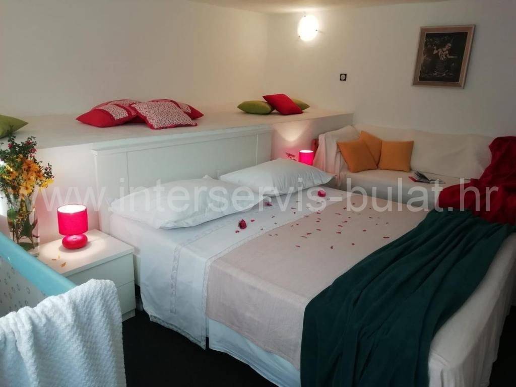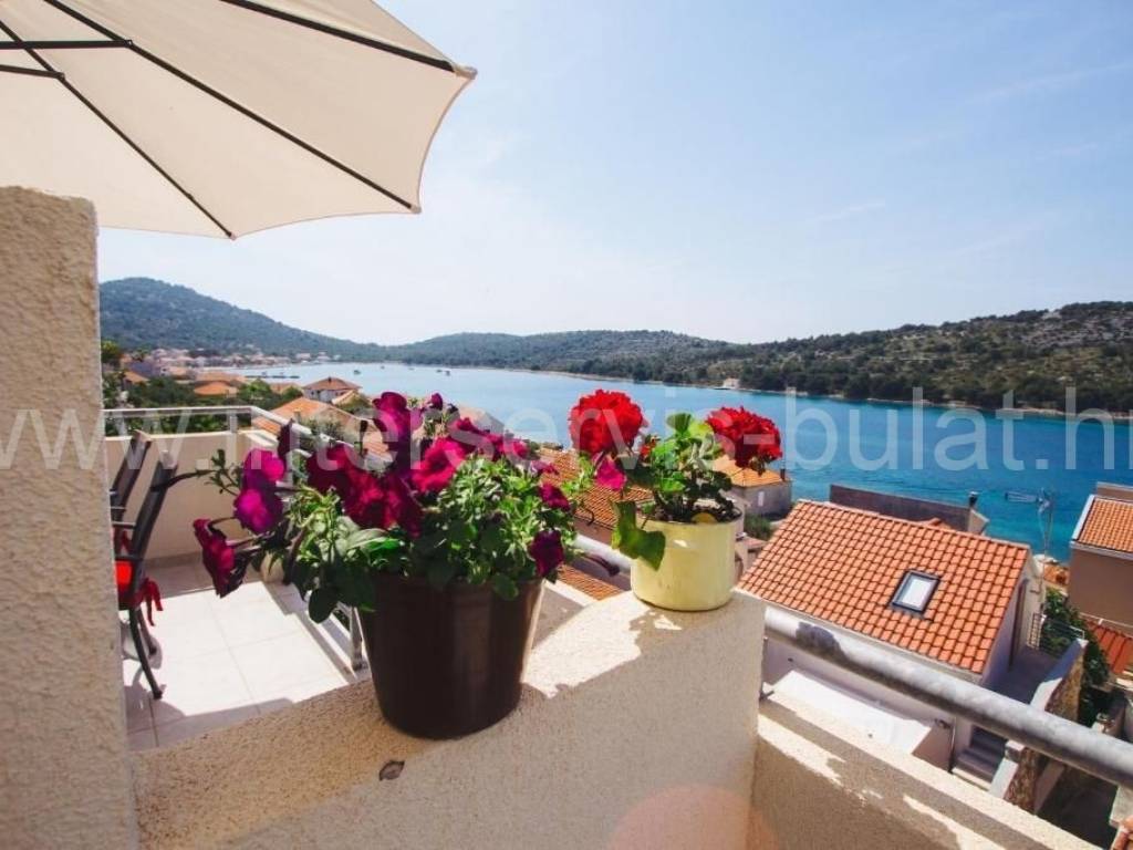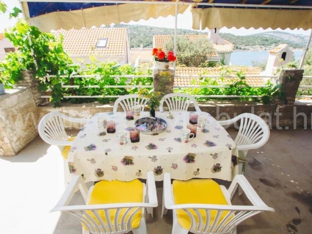 .::: Predivna kuća sa 4 app na otoku Kapriju :::. Na izvrsnoj lokaciji na otoku Kaprije u 3. redu do mora smještena je prekrasna samostojeća kuća. Nalazi se samo 50 metara do plaže i 450 metara do pristaništa u centru mjesta a 300m do novog pristaništa. Na parceli od 504 m2kuća raspolažepovršinom od neto 180 m2 i sadrži tri stambene etaže, od kojih svaka ima poseban pristup i ulaz. U suterenu (razizemlje) od 47 m2 nalazi se dvosoban stan s velikom terasom od 22m2 i gusterna od 6,5 m2. Vanjske stepenicevode za gornje etaže. U visokom prizemljuse nalazi dvosoban stan površine 56 m2 i prostrana terasa od 35 m2 s otvorenim pogledom na more. Visoko potkrovlje površine 58 m2 raspolaže s dva vrlo simpatična jednosobna apartmana. Svaki apartman ima balkon od 11 m2 s prekrasnim panoramskim pogledom na mjesto Kaprije, otoke i more. Svi stanovi su kompletno opremljeni i namješteni ikompletannamještaj je uključen u cijenu nekretnine. Pored kuće nalazi se roštilj s nadstrešnicom i ostava od cca 10 m2. Obilazak nekretnine moguć je uz prethodni dogovor i rezervaciju termina (minimalno dva dana unaprijed). Molimo pri telefonskom kontaktu obavezno navesti šifru objekta (ID nekretnine). Radujemo se Vašem pozivu.
