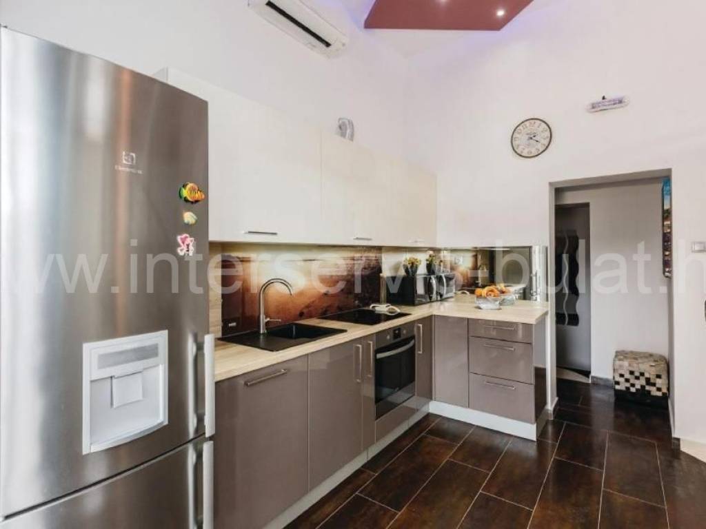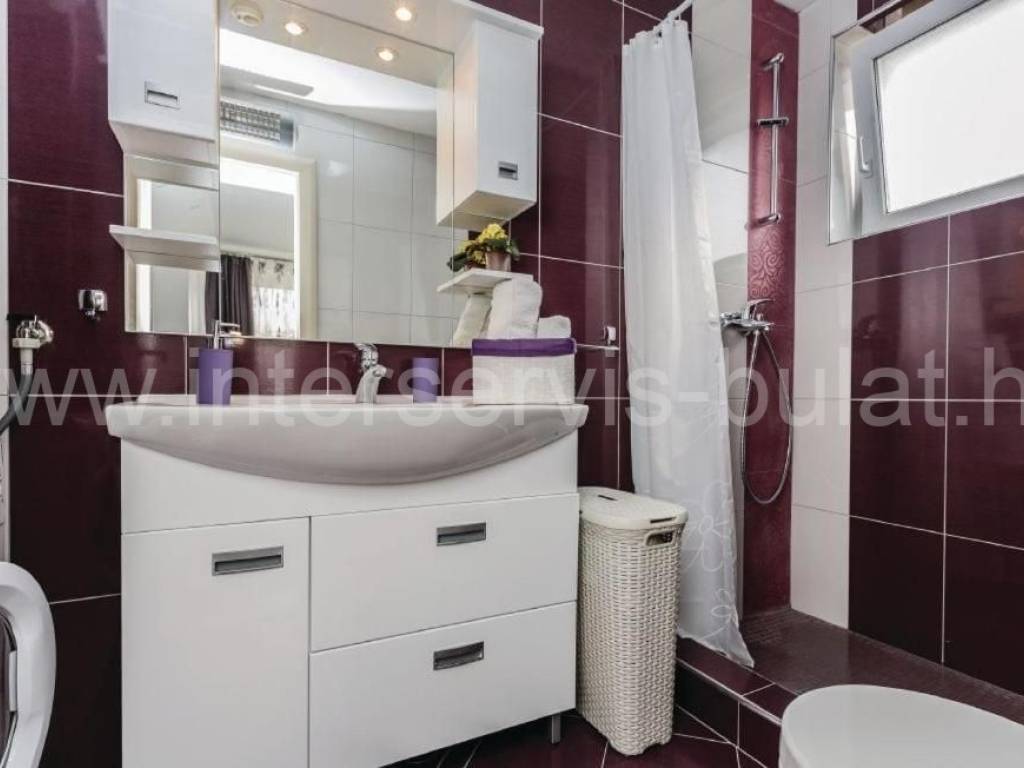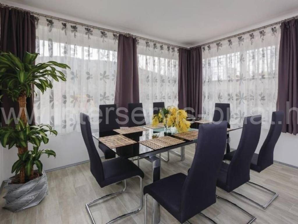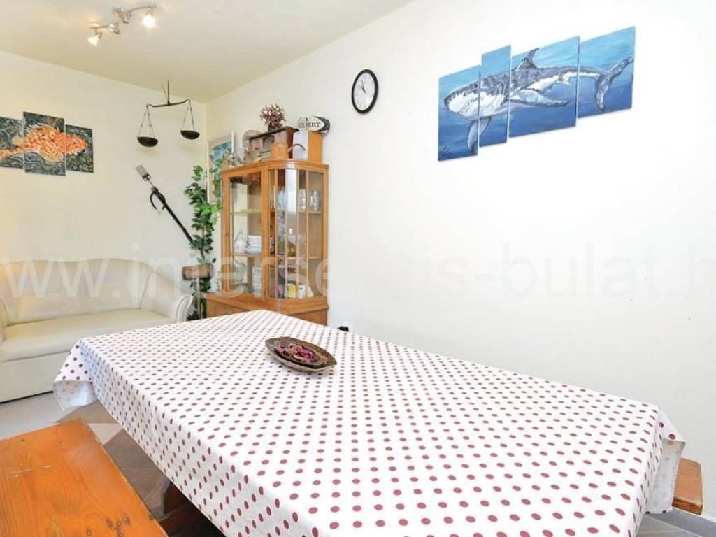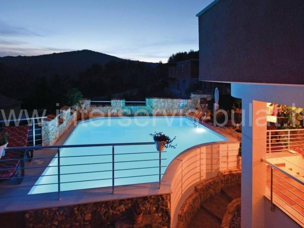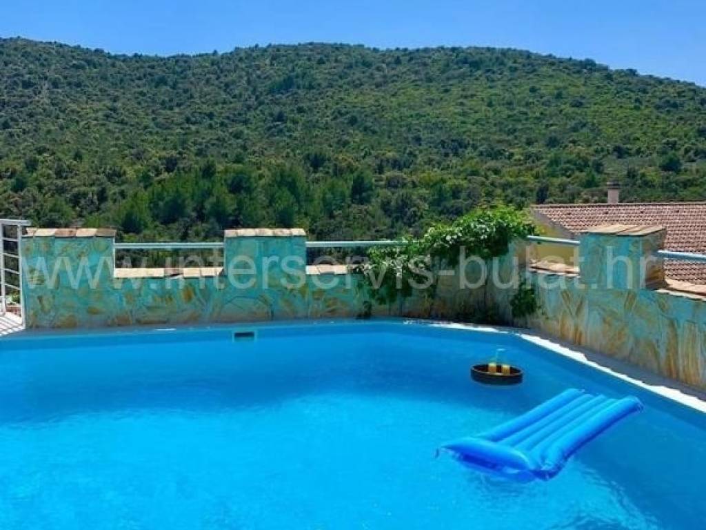 .::: Vila s bazenom :::. U Vinišću 530 metara do mora nalazi se vila s bazenom, na parceli od 472m2;sastoji se od suterena, prizemlja i kata. Vila raspolaže s ukupnom stambenom površinom od 160m2. U suterenu je kompletno uređen i useljiv dvosoban stan 80m2 s terasom od 33m2. Prizemlje raspolaže s 30m2 i izlazom na terasu gdje je predviđen apartman koji je u grubim radovima. Uređen i useljiv apartman nalazi se na katu s balkonom ipogledom na more. U dvorištu se nalazi bazen od 43m2 ispod kojeg je kotlovnica i gusterna s vodom kišnicom, konoba za druženje od 10m2 gdje se je hidrofor za vodu te vanjski roštilj. Okućnica je uređena i održavana, bogata zelenilom. Pristup i blizina mora čine je idealnom za sve koji se žele baviti turizmom. Obilazak nekretnine moguć je uz prethodni dogovor i rezervaciju termina (minimalno dva dana unaprijed). Molimo pri telefonskom kontaktu obavezno navesti šifru objekta (ID nekretnine). Radujemo se Vašem pozivu.