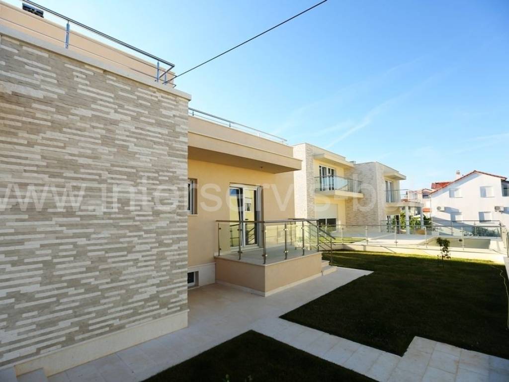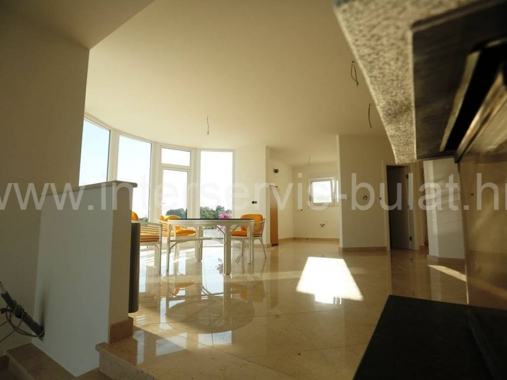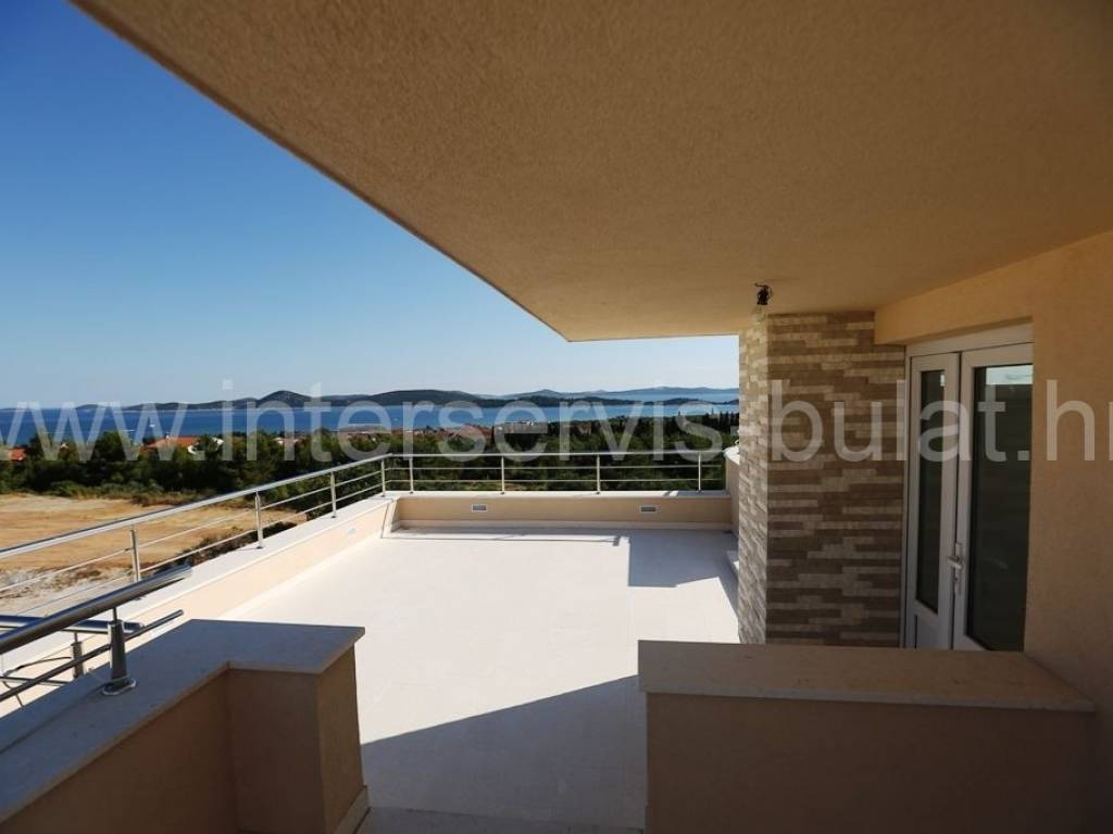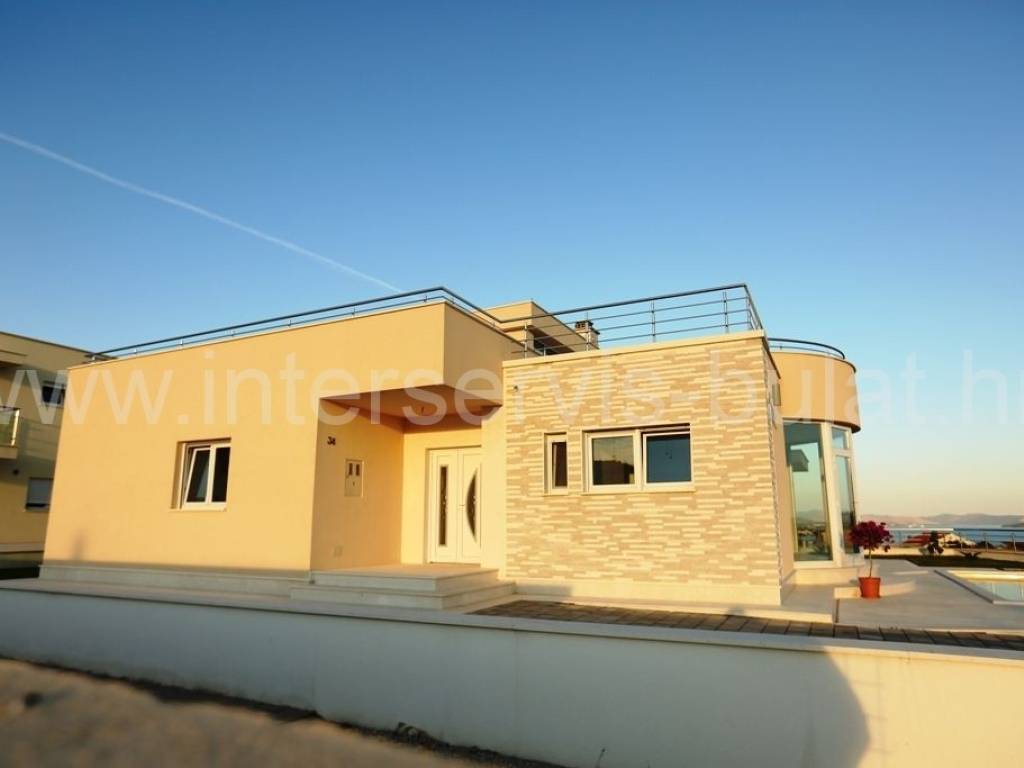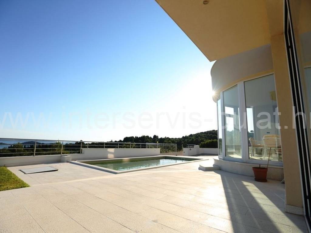 .::: Luksuzna vila s bazenom :::. Novoizgrađena vila u Vodicama smještena na povišenoj lokaciji omogućava prekrasan panoramski pogled na Vodice, Tribunj i more. Na parceli od 602m2 raspolaže s280m2 unutarnjeg luksuza. Moderna gradnja i vrhunski materijali zaštitni su znak ove samostojeće vile. U suterenu se nalazi apartman za goste dok komforno i prozračno prizemlje raspolaže s 3 sobe, 2 kupaonice, zasebnim toaletom, lijepom kuhinjom s blagovaonicom, ostavom i dnevnim boravkom. Vila ima prekrasnu terasu nesvakidašnjeg oblika i fenomenalnog pogleda. Ispred se nalazi lijep bazen od 27m2 s decentno uređenom okućnicom. Impresivna krovna terasa od 120m2 omogućuje nezaboravne zalaske sunca. Vila opremljena s top materijalima i tehnologijom pruža nesvakidašnji luksuz. Od materijala su korišteni granit i mramor, podno grijanje na toplinsku pumpu i centralni klima uređaj omogućuju tijekom cijele godine optimalnu temperaturu u cijeloj vili. Obilazak nekretnine moguć je uz prethodni dogovor i rezervaciju termina (minimalno dva dana unaprijed). Molimo pri telefonskom kontaktu obavezno navesti šifru objekta (ID nekretnine). Radujemo se Vašem pozivu.