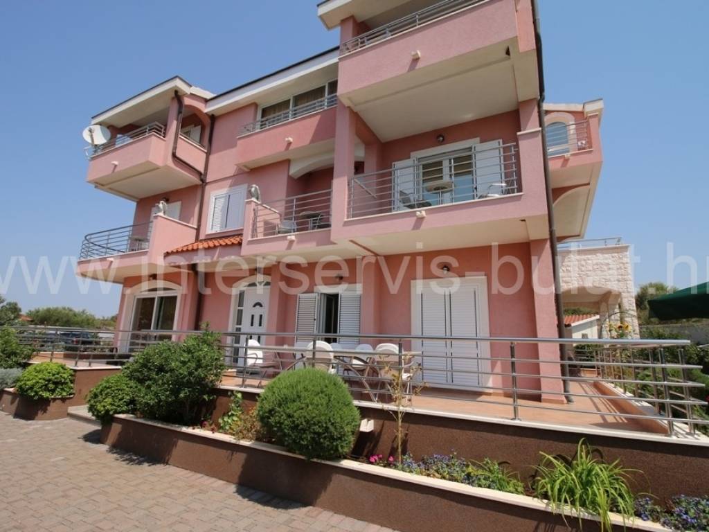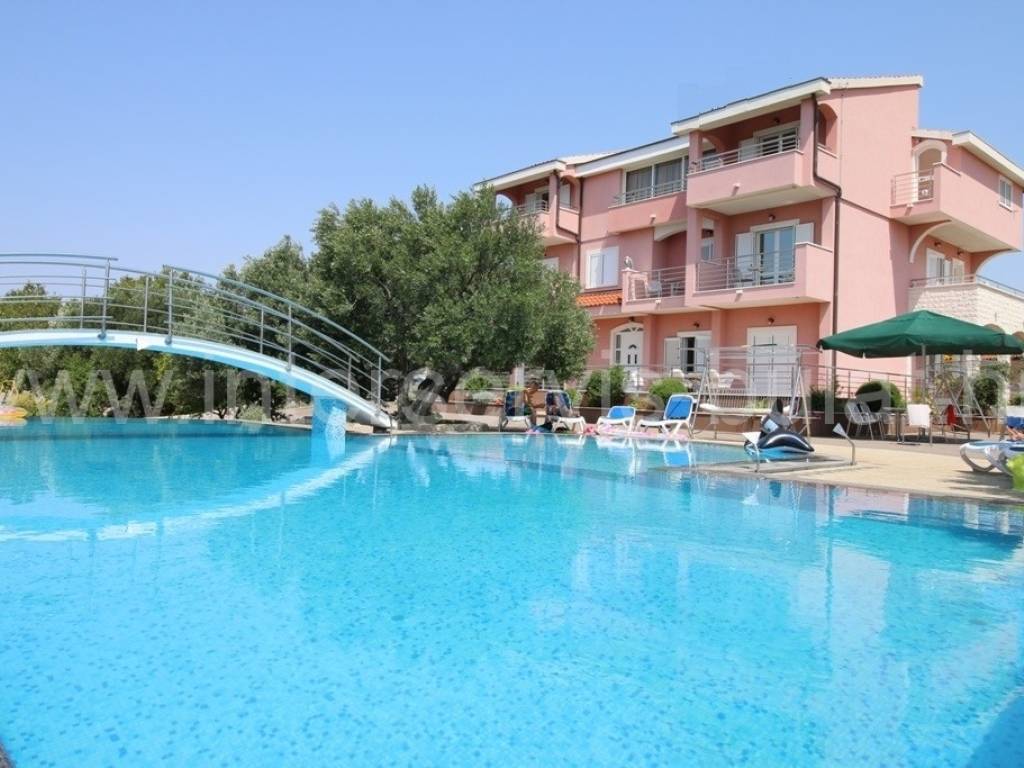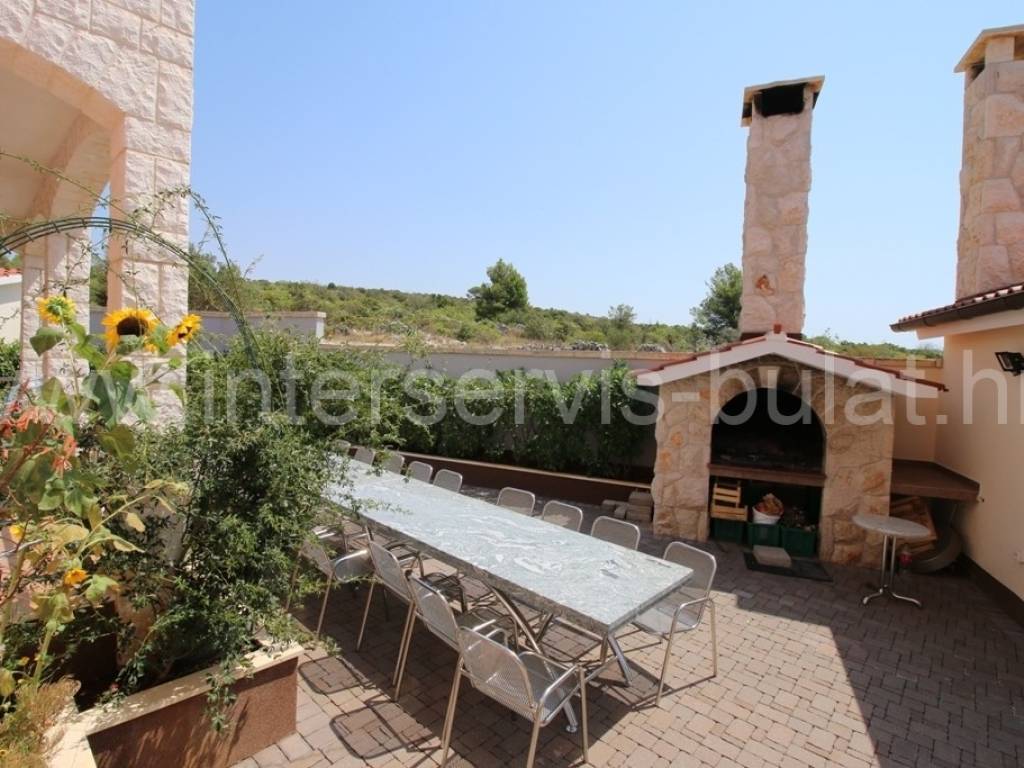 .::: Apartmanska kuća s bazenom :::. Luksuzna apartmanska kuća s bazenom u Primoštenu, nalazi se na parceli od 2.395m2. Kuća se sastoji od prizemlja, katai visokog potkrovlja -ukupno 647m2 bruto stambene površine. Kuća raspolaže sa šest stambenih jedinica, i to pet dvosobnih apartmana i jednog jednosobnog apartmana. Svaka jedinica ima svoj balkon sa kojeg se pruža predivan pogled na more. Apartmani su uređeni i održavani. Cijelo je imanje uređeno i ograđeno što omogućava potpunu intimu. Vanjski prostor raspolaže sa: konobom cca 22m2 koja je idealna za druženje, vanjskim roštiljem, prostranom terasom. Tu se nalaze i prostorije za kotlove, prostorije za agregat, gusterna za vodu/kišnicu, vešeraj, vanjski sanitarni čvor. Cjelokupni dojam podiže fantastičan bazen i vanjski šank koji se nalazi odmah pored. Bazen svojom površinom od 123m2 idealan je za osvježenje i daje poseban opuštajući ugođaj. Za sve koji se vole baviti sportom i vježbanjem ima i uređenu teretanu površine 35m2. U sklopu okućnice se nalazi i natkriveno parkiralište predviđeno za 6 automobila. Do mora i centra mjesta oko 1500m. Obilazak nekretnine moguć je uz prethodni dogovor i rezervaciju termina (minimalno dva dana unaprijed). Molimo pri telefonskom kontaktu obavezno navesti šifru objekta (ID nekretnine). Radujemo se Vašem pozivu.