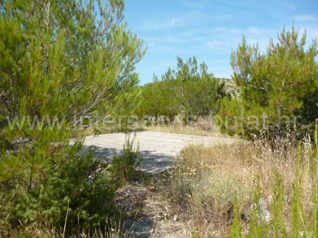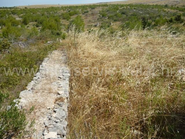 .::: Poljoprivredno zemljište s pogledom na more :::. Poljoprivredno zemljište površine 2.159 m2, duguljastog oblika. Nalazi se na mirnoj lokaciji, na uzvisini s pogledom na more. Teren je ograđen željeznim vratima i djelomično okružen suhozidom. Na terenu su započeti temelji i nalivena je septička jama. Zemljani prilazni put do terena. Moguća je kupnja polovice zemljišta. Do mora 150 m. Obilazak nekretnine moguć je uz prethodni dogovor i rezervaciju termina (minimalno dva dana unaprijed). Molimo pri telefonskom kontaktu obavezno navesti šifru objekta (ID nekretnine). Radujemo se Vašem pozivu.