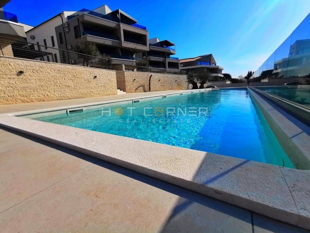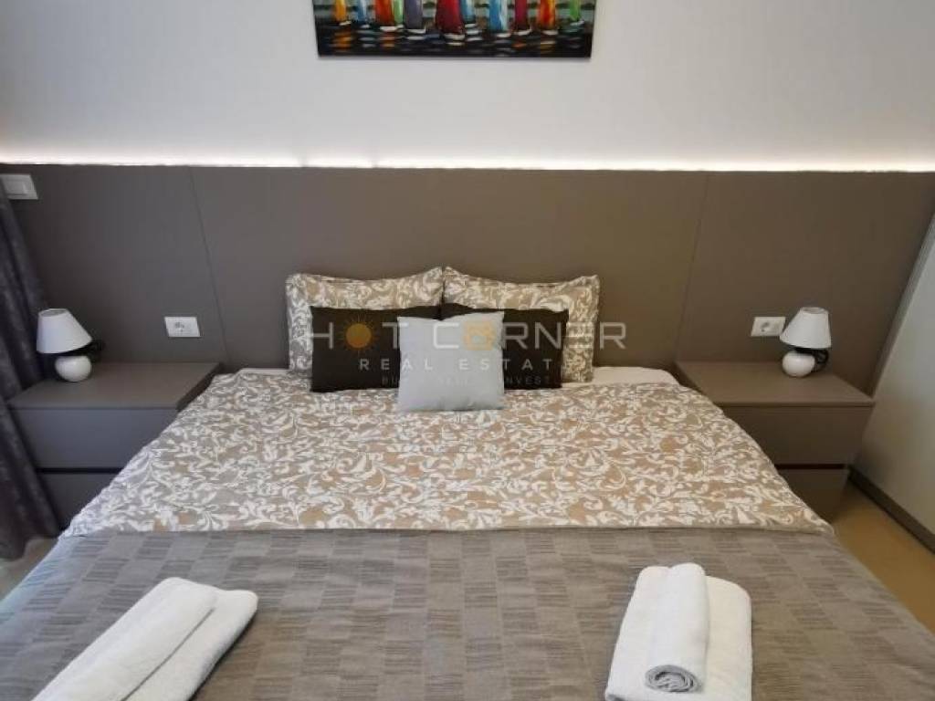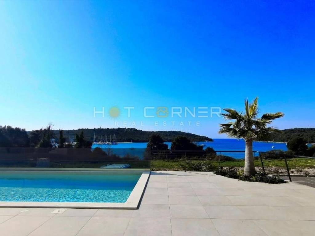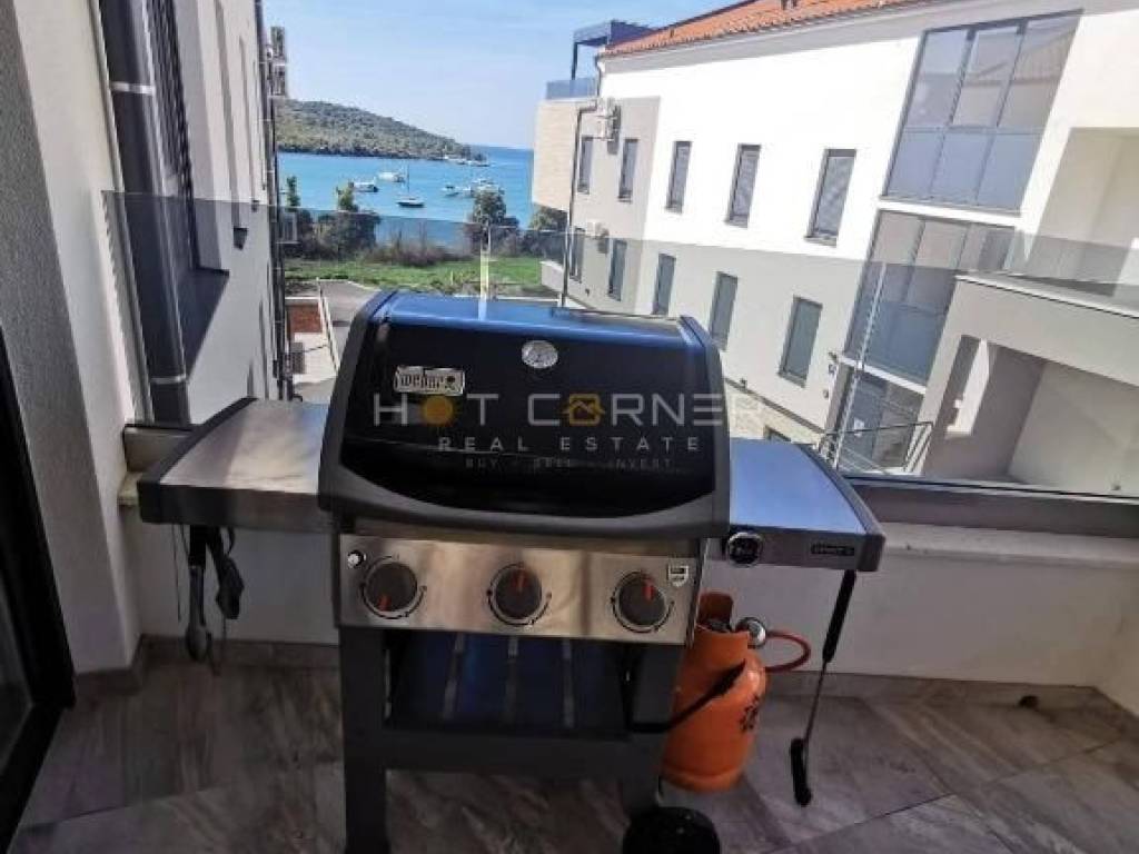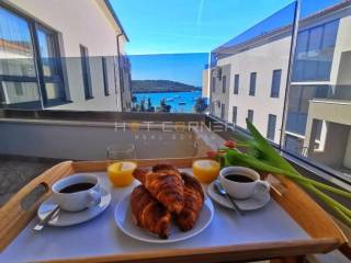 Na fenomenalnoj lokaciji, direktno iznad uređene plaže, s pogledom na more u smjeru jugozapada na prekrasnu malu uvalu, u luksuznom resortu zatvorenog tipa s velikim zajedničkim bazenom, u zgradi s liftom, na prodaju luksuzno opremljeni apartman , s ukupnom nego korisnom površinom 95,59 m2 sa sljedećom strukturom: