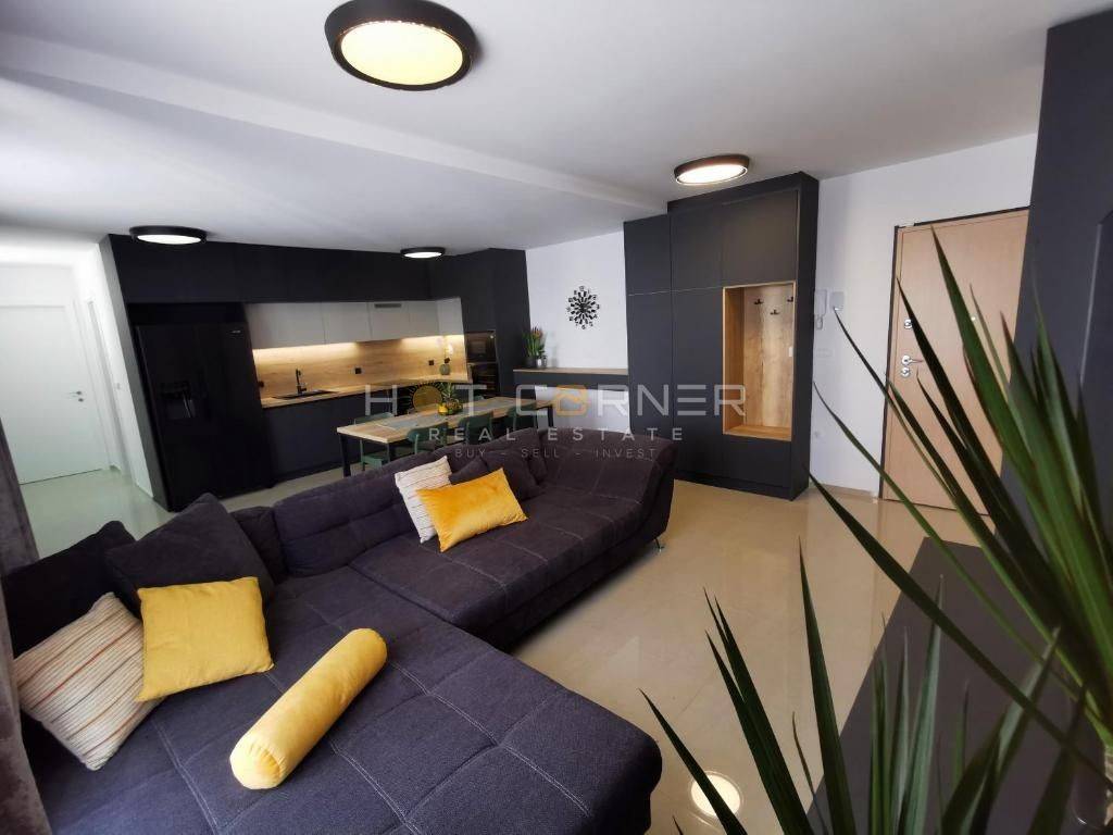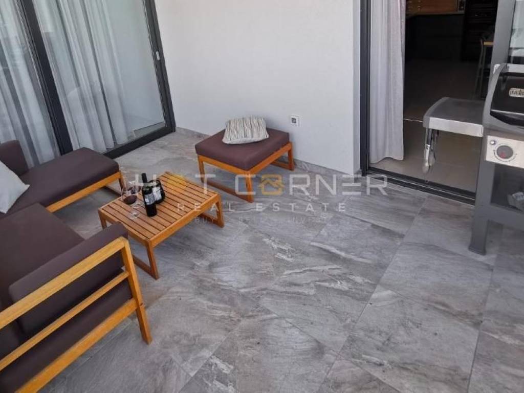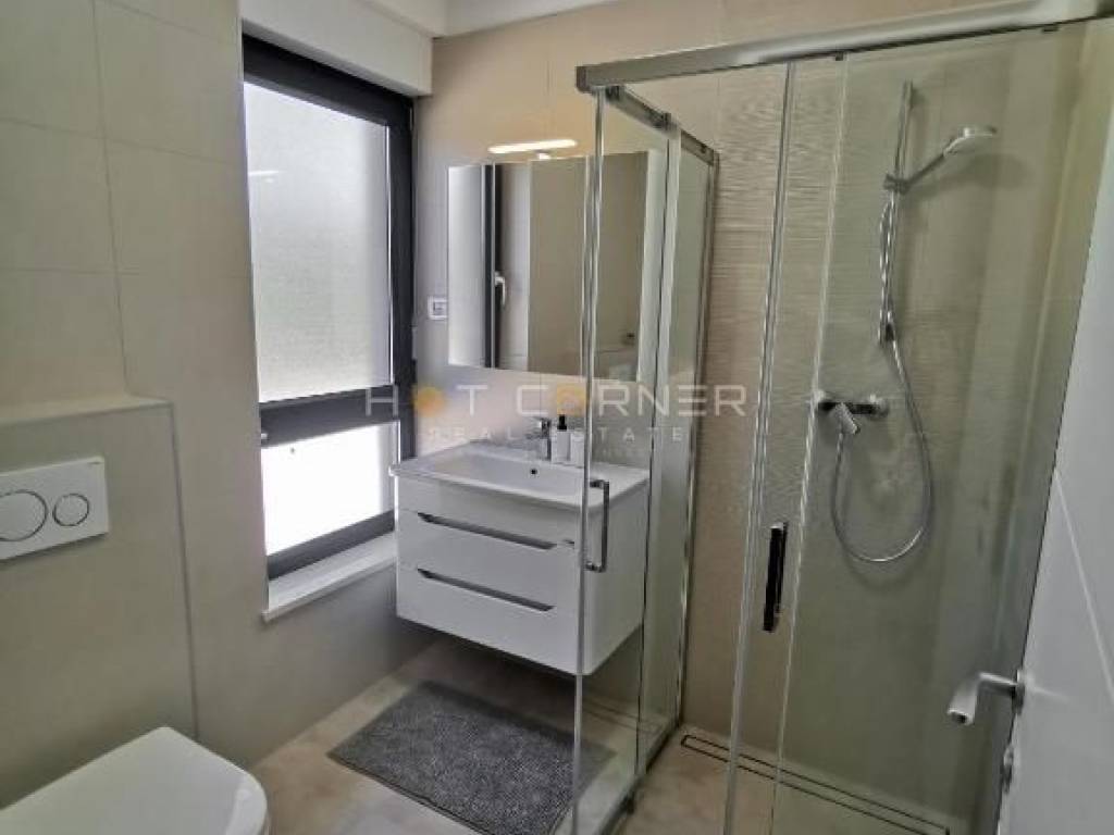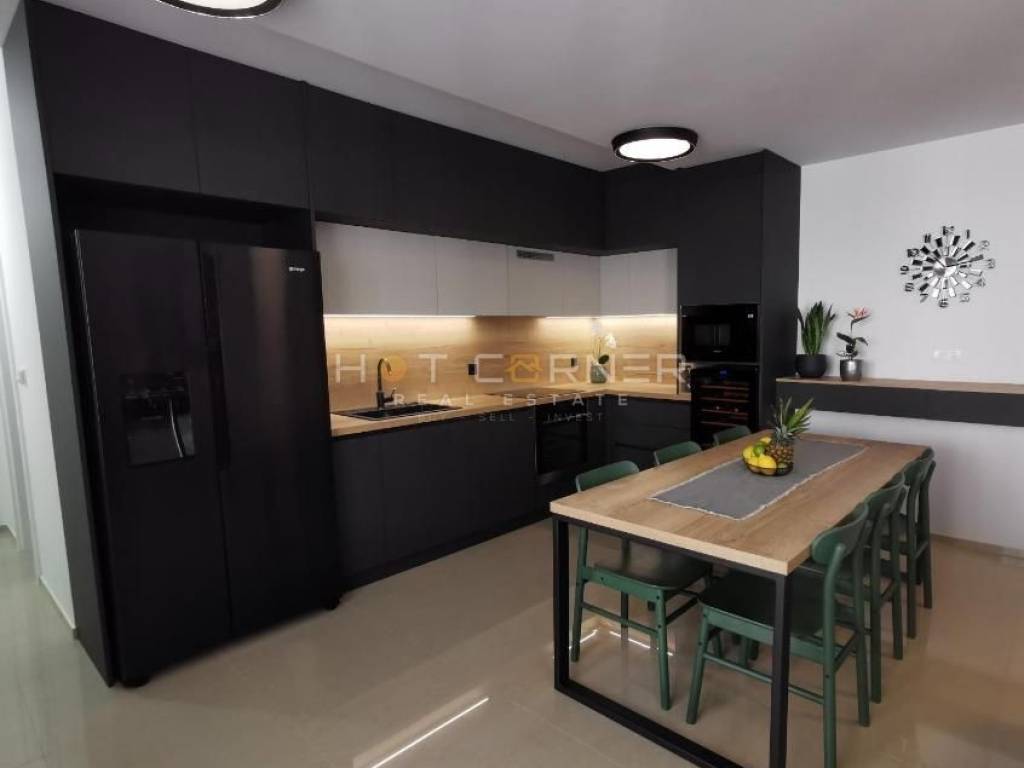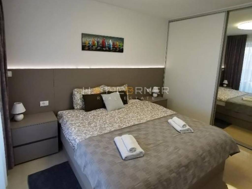 Oprema stana: 2 klima jedinice, električno podno grijanje u cijelom stanu, električne rolete u dnevnom boravku i glavnoj spavaćoj sobi, dvokrilni hladnjak s ledomatom, hladnjak za vino, perilica posuđa, indukcijska ploča, pećnica i mikrovalna, ugrađeni grill, kombinirana perilica i sušilica rublja.