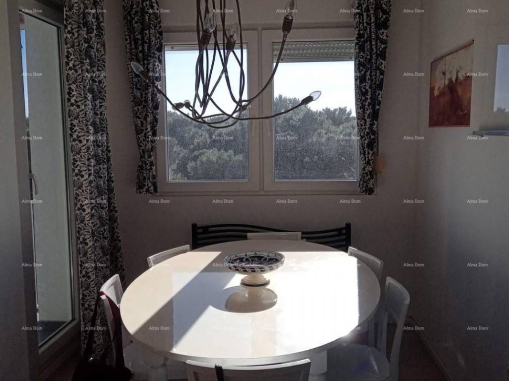 Prodaje se stan sa pogledom na more, Pula.Svijetao apartman od 70 m2, sastoji se od velikog dnevnog boravka s kuhinjom i blagovaonicom, 2 spavaće sobe (jedna s bračnim krevetom i jedna s 4 kreveta), 2 kupaonice (jedna s kadom i perilicom rublja i jedna s velikim tušem), prostrana terasa sa stolom za blagovanje. Karakteristike stana:-Dvostruka stakla- daščani parket, -etažno grijanje, - klima uređaj- kompletno renoviran kvalitetnim materijalima.Stan ima pogled na more iz spavaće sobe, dnevnog boravka i blagovaonice. Parkirno mjesto na parkingu rezerviranom samo za stanare.Stan se nalazi na svega 300 metara od mora, do kojeg vodi šetnica kroz borovu šumu koja posjeduje wellness stazu. Za više informacija, molimo kontaktirajte:Azra+385 91 611 5706+385 98 420 885azra@almadominvest.com