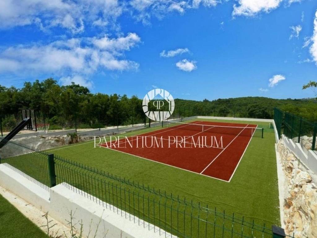 Istra, Poreč U okolici grada Poreča, blizu mjesta Vrsar smjestila se ova moderna vila stambene površine od 203m2 i zemljišta veličine 3790m2.Na prekrasnom imanju nalazi se još veliki bazen sa kojeg se pruža prekrasan pogled na mjesto i more, teniski teren, vanjska teretana i natkrivena ljetna kuhinja. U suterenu vile je smještena kotlovnica, spremište te igraonica u kojoj se nalazi stol za bilijar, igrače konzole i kućno kino.U prizemlju imamo hodnik, kuhinju, blagovaonu, prostrani dnevni boravak sa lijepim kaminom te jednu spavaću sobu sa vlastitom kupaonom.Iz dnevnog boravka i kuhinje moguć je izlaz na terase gdje se nalazi veliki stol za objedovanje.Na prvome katu smještene su tri spavaće sobe sa vlastitim kupaonama od kojih 2 imaju izlaze na terase.Po cijeloj vili postavljeno je podno grijanje za ugodan zimski boravak, a svaka soba te dnevni boravak imaju klima uređaje za ljetno rashlađivanje.Uz grijani bazen veličine 44m2 nalazi se veliko sunčalište na kojemu je smješten jacuzzi za dodatno uživanje i relaksaciju.Ova očaravajuća moderna vila prepuna raznih dodatnih sadržaja je uistinu rijetkost na tržištu i svakako vrijedna pažnje. ID: 816_0203