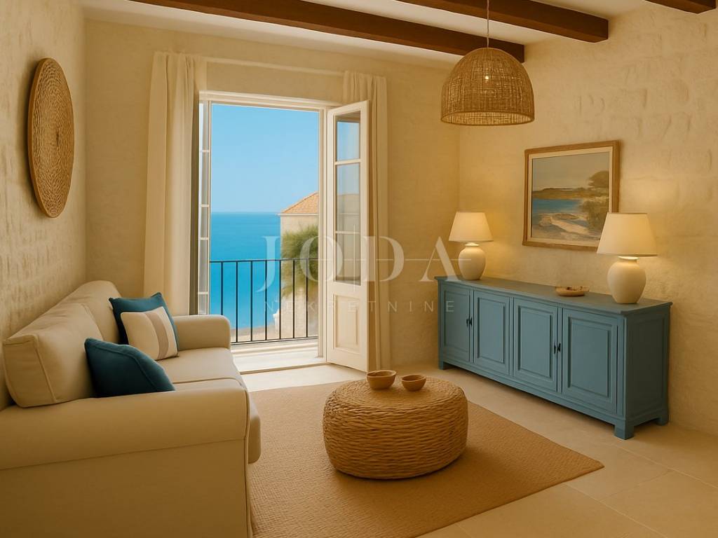 Udaljena samo 10 metara od mora, prodaje se kuća u nizu. Trenutno se prizemlje sastoji od hodnika, kuhinje, kupaone, dnevnog boravka te jedne spavaće sobe. Unutarnjim stepenicama dolazi se na prvi kat otvorenog plana iz kojeg se izlazi na balkon s otvorenim pogledom na more. Uz kuću se nalazi i garaža iz koje se ulazi direktno u kuću.