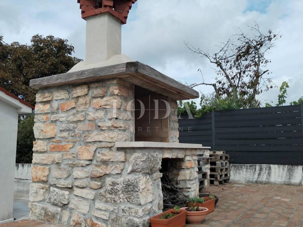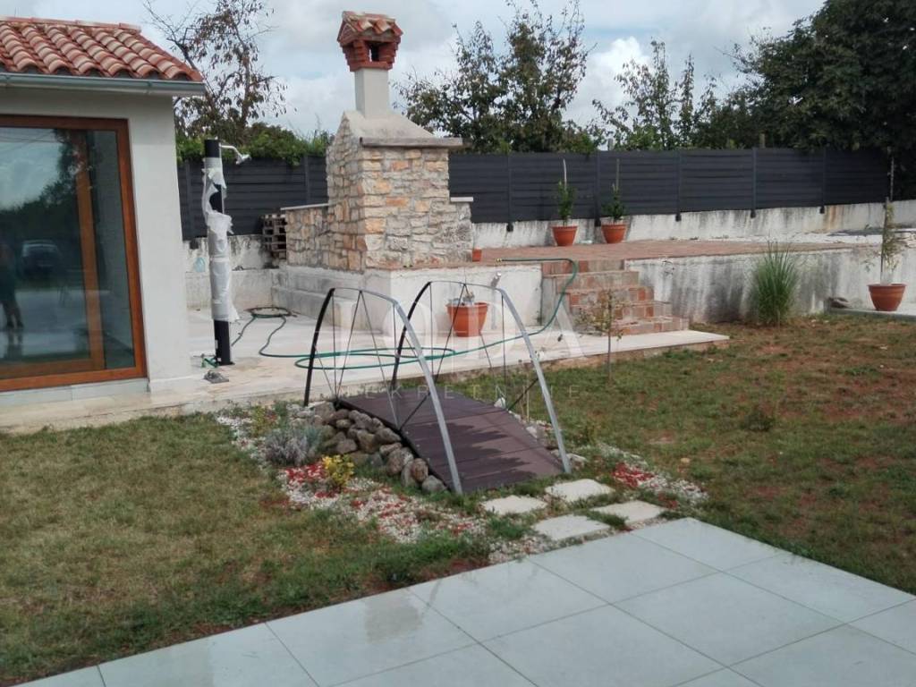 Na prostranoj okućnici nalazi se bazen sa sunčalištem, dodatni objekt, kamin, te dječje igralište, koje je također novo i neraspakirano, kao i vrtna garnitura, ležaljke i dvije nadstrešnice.