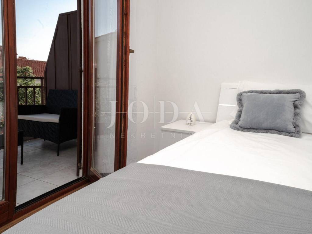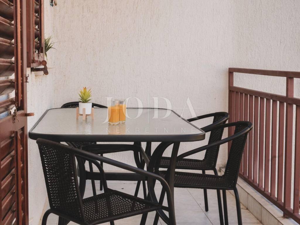 U mirnoj ulici, nedaleko mora i plaža, nalazi se ovaj stan.