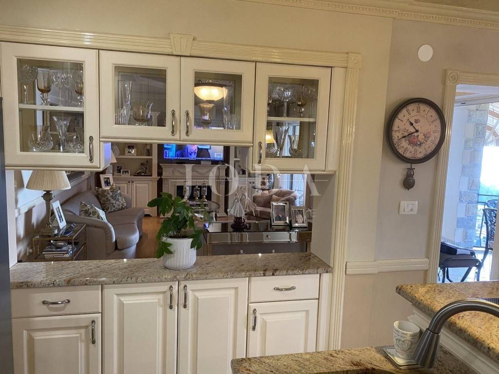 Na katu je smješten stan od 130 četvornih metara, kojeg čine kuhinja sa blagovaonom, veliki dnevni boravak, dvije spavaće sobe i kupaona.