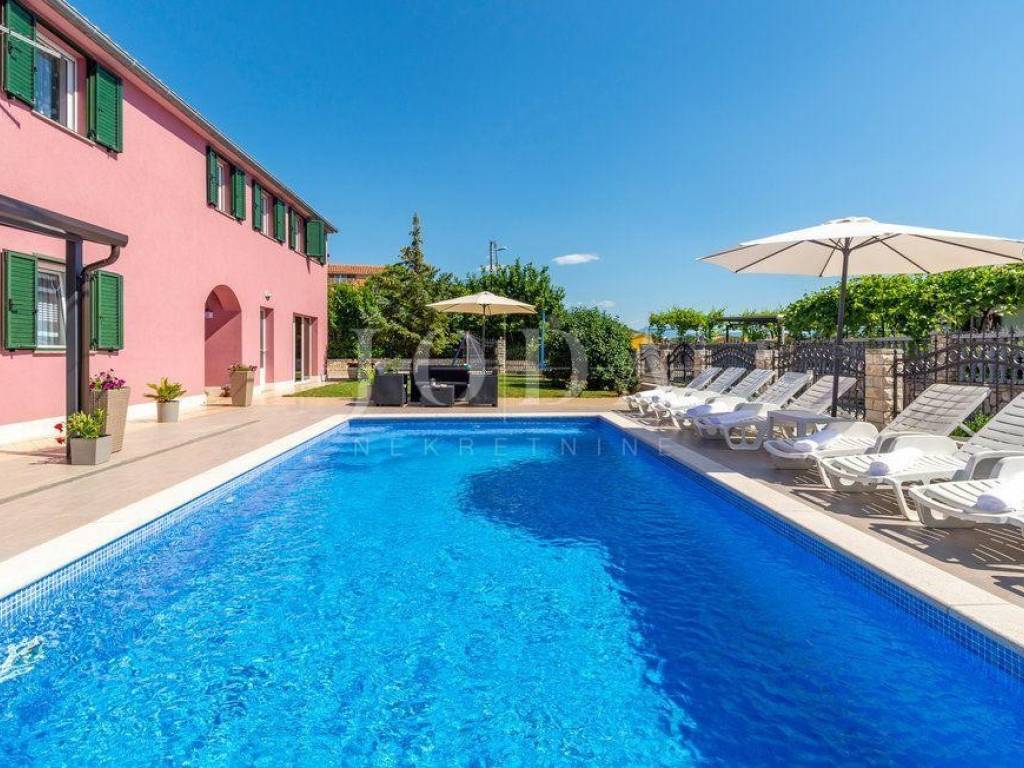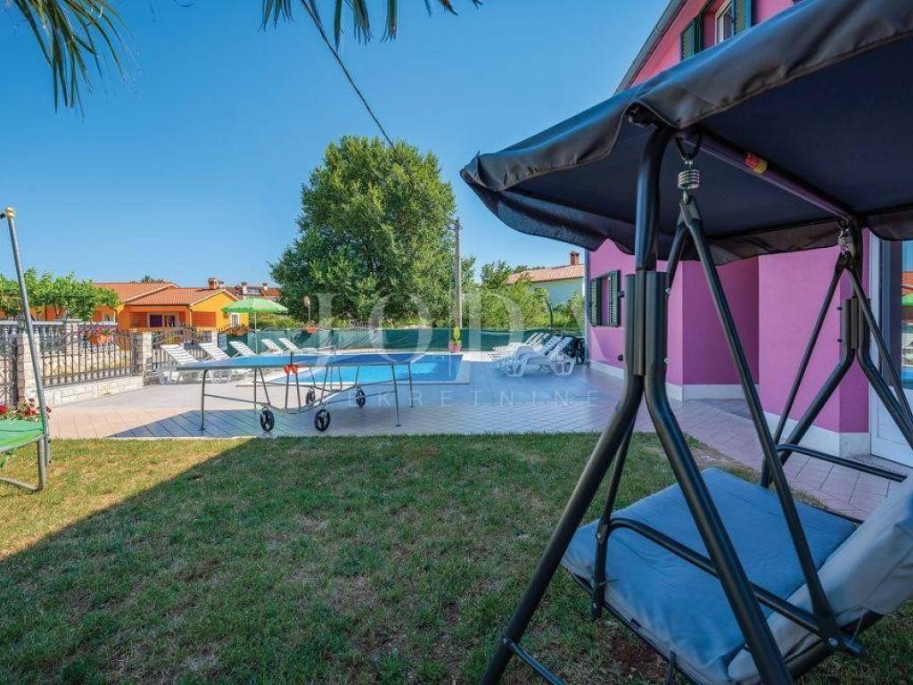 Na uređenoj okućnici nalazi se bazen sa sunčalištem, parking i dječje igralište.