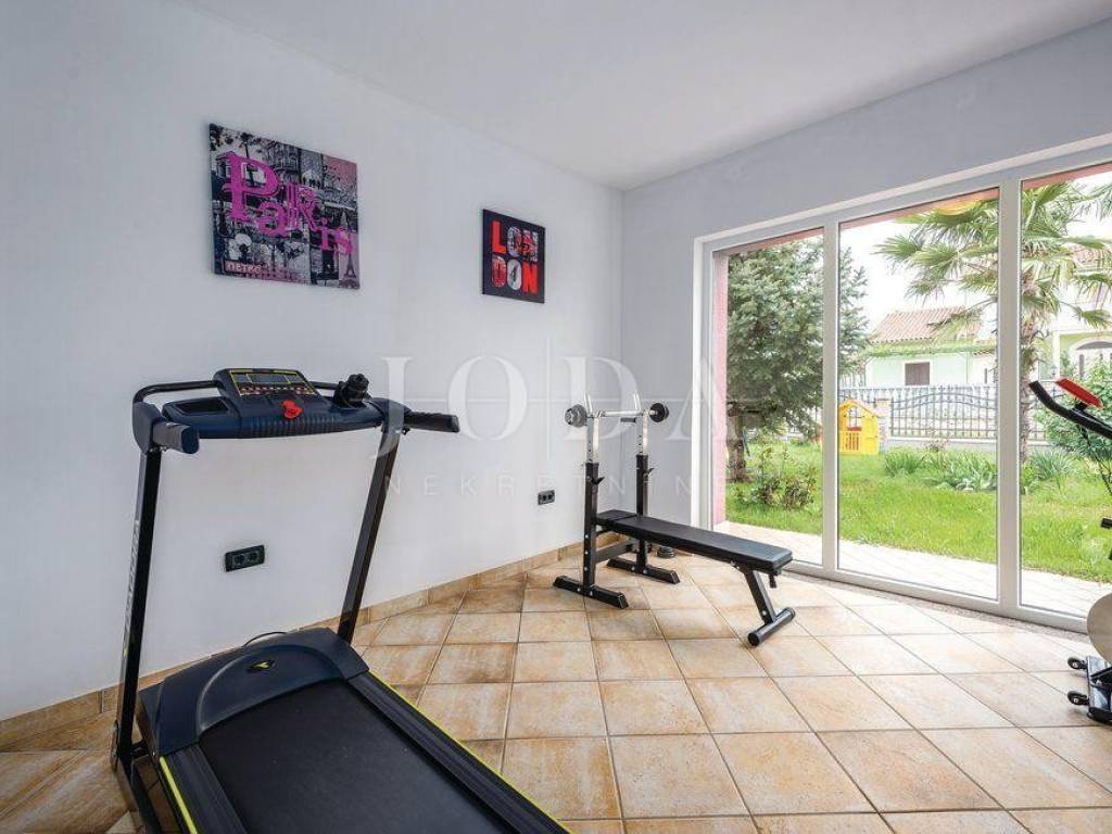 U suterenu je posebna prostorija sa vanjskim ulazom, gdje se nalazi teretana.