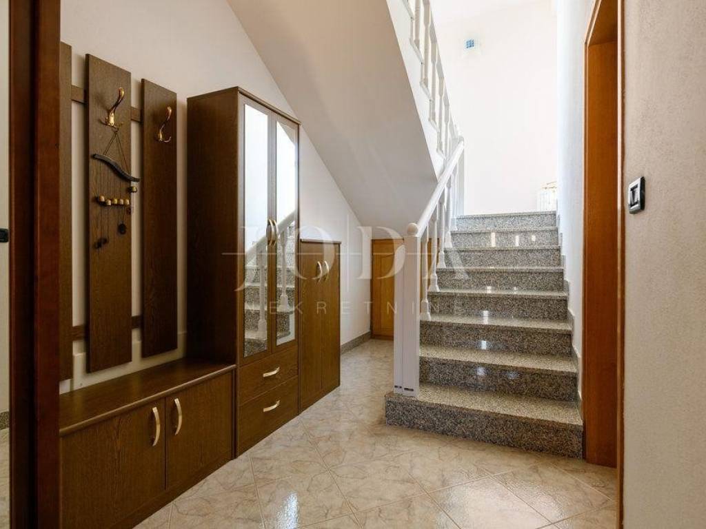 Na katu su smještene još četiri spavaće sobe, kuhinja, blagovaona, dnevni boravak, dvije kupaone, te zatvorena terasa.