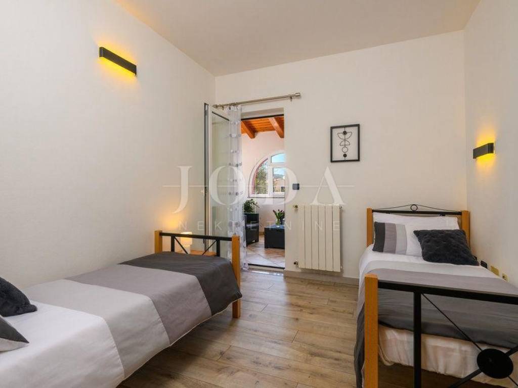 Uz kuću se nalazi poseban pomoćni objekt, koji se satoji od kuhinje, dnevnog boravka sa prekrasnim kamenim ognjišćem, spavaća soba i kupaona.