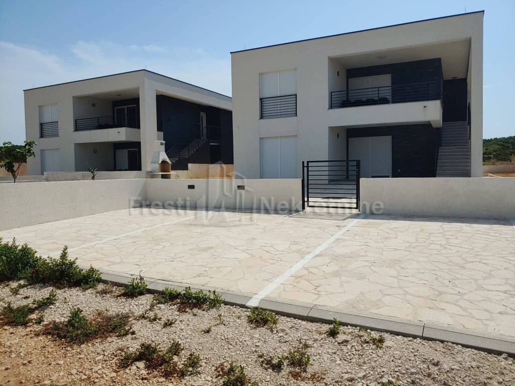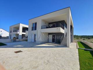 Svaki kat se sastoji od 3 spavaće sobe površine cca. 12 m2, dnevnog boravka površine 23,73 m2, kuhinje i blagavaonice 16,47 m2, kupaonice s predprostorom od cca.7m2, terase od 15,24m2 i ostave 1,65 m2. Dakle, ova moderna kuća ima sveukupno 6 spavaćih soba, dva dnevna boravka s blagavaonicama i kuhinjama, dvije kupaonice, dvije ostave, dvije terase i više parkirnih mjesta na okućnici površine 380m2.