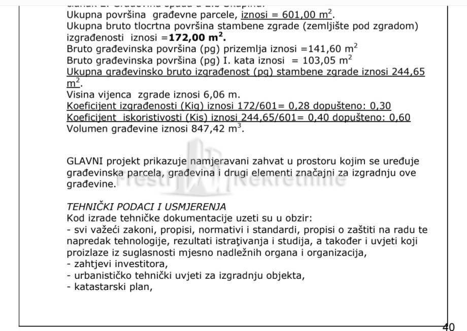 Površina građevinske parcele iznosi: 601,00 m2.