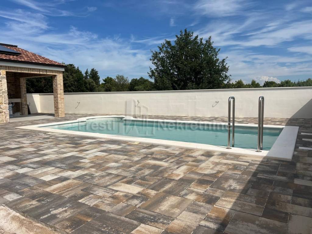 Kuća se nalazi na parceli površine394m2, u kojem se pored kuće nalazi predivni grijani bazen putem dizalice topline sa jacuzzi-em površine 25.80m2, 8x4m, te pomoćni objekt sa ljetnom kuhinjom i roštiljem te strojarnica od bazena, na objektu se nalaze solarni paneli koji osiguravaju grijanu vodu u cijeloj kući.