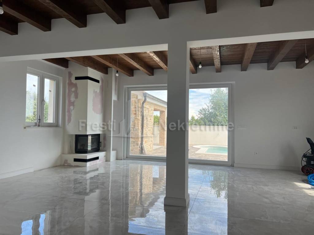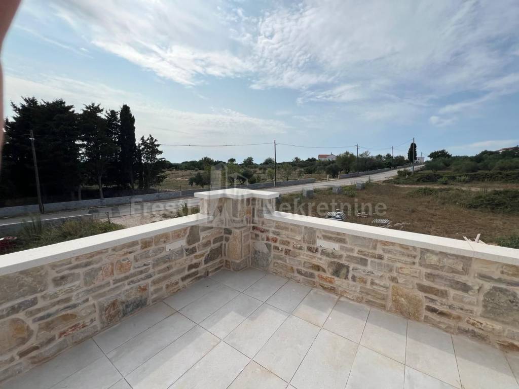 U mirnom naselju Vrsi pokraj Zadra na prodaju je prekrasna mediteranskog stila kamena kuća u novogradnji, površine 165m2. Kuća se sastoji od prizemlja i kata, u prizemlju pri ulazu vas dočekuje natkriveni trijem, ulazni dio u kući, jedna spavaća soba, kupaonica, prostrana open-space kuhinja s blagovaonicom i dnevnim boravkom koji vas kroz staklene stijene vodi u predivno prostrano dvorište sa bazenom.