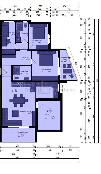krovna terasa (22,50m2, brutto 90,00m2 )