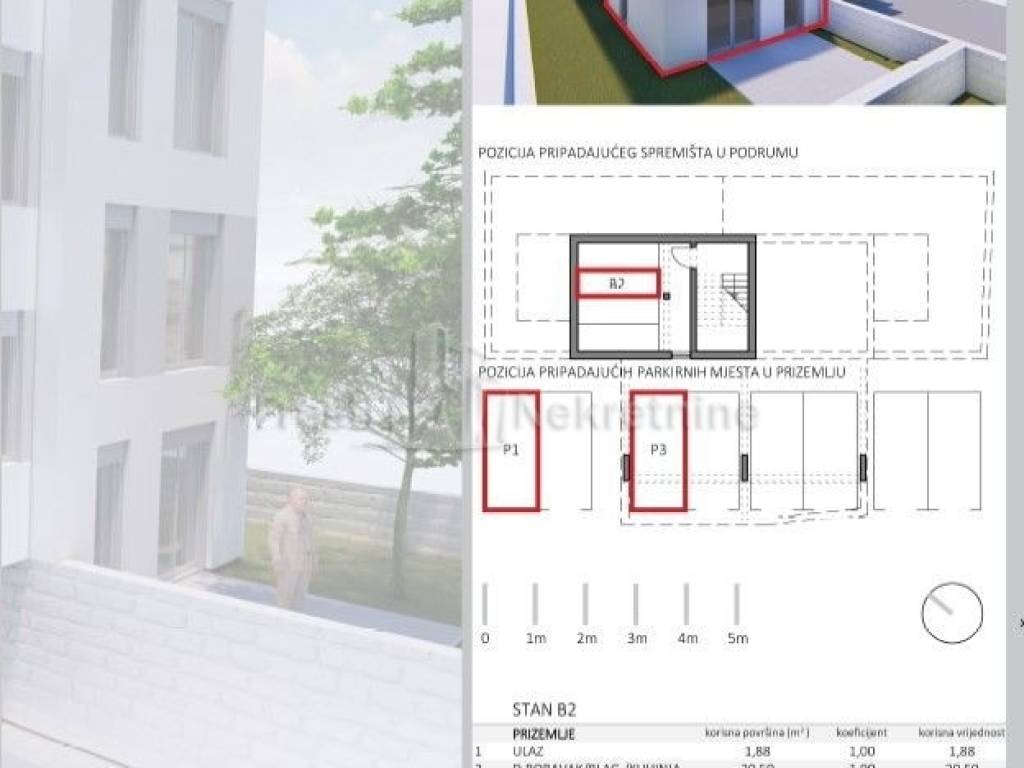 Apartman "B2" je dvosoban dvoetažan stan sa pripadajućim vrtom, spremištem u podrumu te dva parkirna mjesta. Površina zatvorenog dijela stana bez balkona, terase i pripadaka iznosi 54,44 m2, a sastoji se od :