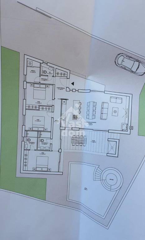 Vila se nalazi na parceli od 588 m2 sa okućnicom od cca 444 m2 ,