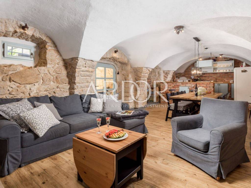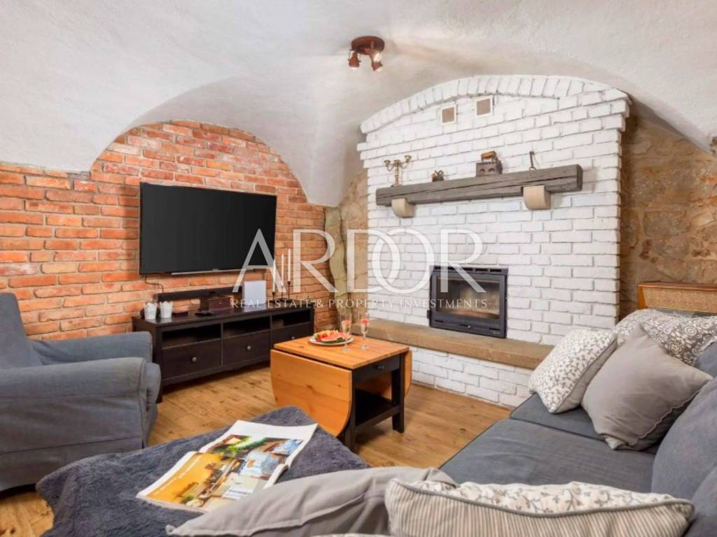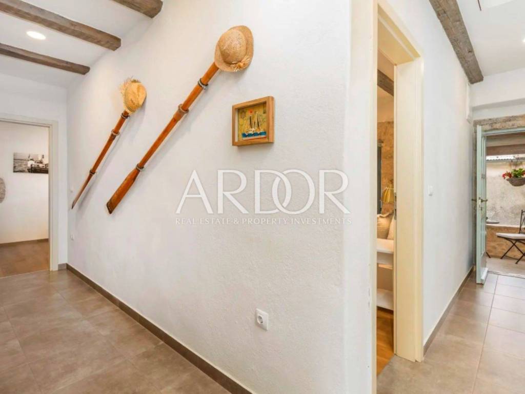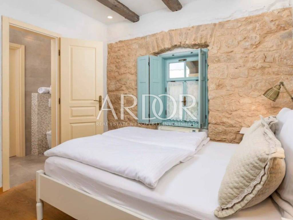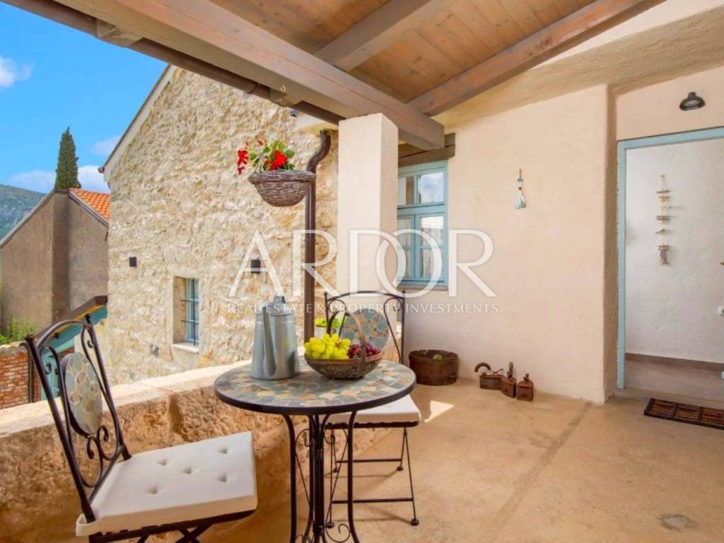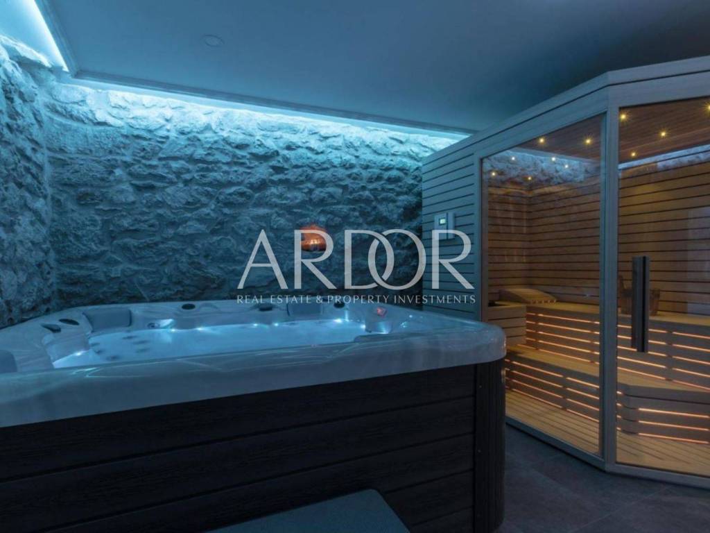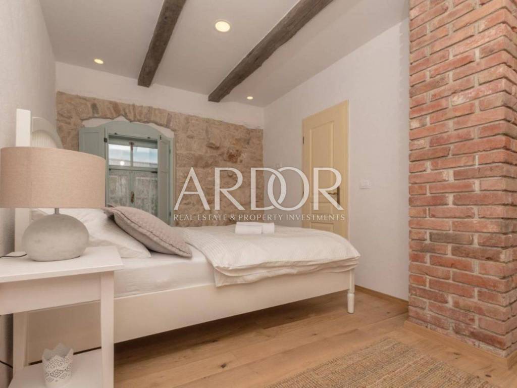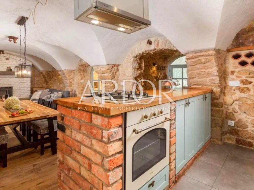 Ova prekrasna kamena kuća oduševljava skladnim spojem rustikalnog šarma i suvremenog dizajna, stvarajući ambijent u kojem se elegancija susreće s udobnošću. Posebnu čar daje privatni bazen smješten u ograđenom dvorištu, okružen kamenim zidovima koji pružaju potpunu privatnost i autentičan mediteranski ugođaj.