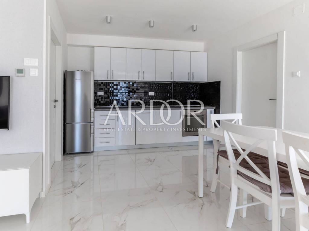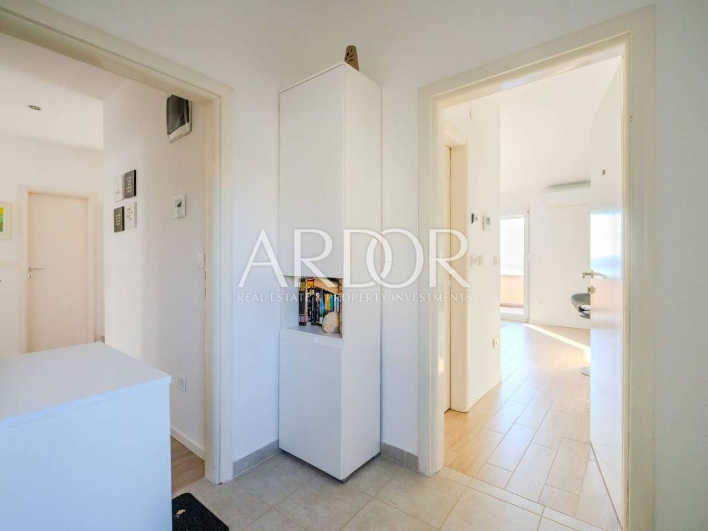 Kuća je potpuno namještena i odmah useljiva. Opremljena je klima uređajima, solarnim sustavom za grijanje vode, garažom od 20 m² te centralnim grijanjem putem dizalice topline, što omogućuje ugodan boravak tijekom cijele godine.