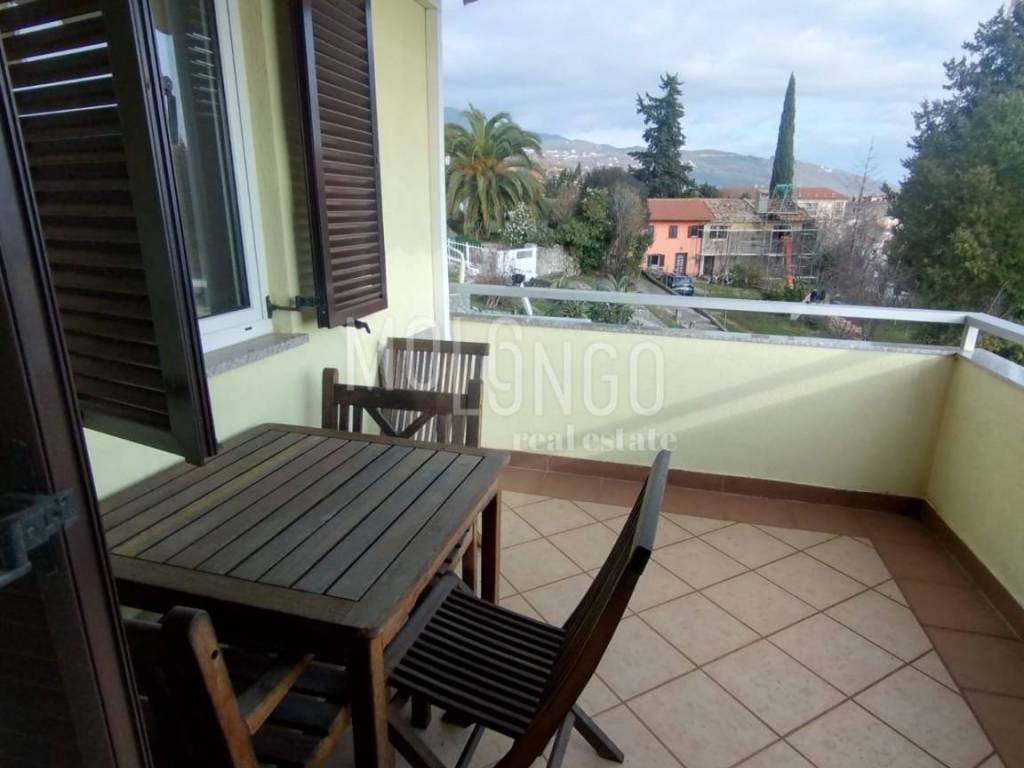 Lovran,stan na odličnoj lokaciji s pogledom na more.Sastoji se od jedne spavaće sobe,dnevnog boravka i moderno namještene kuhinje,kupaonice i hodnika. Balkon s prekrasnim pogledom.Prodaje se namješten.,Stanu pripada jedno parking mjesto i spremište.Manja,uredna i održavana zgrada.