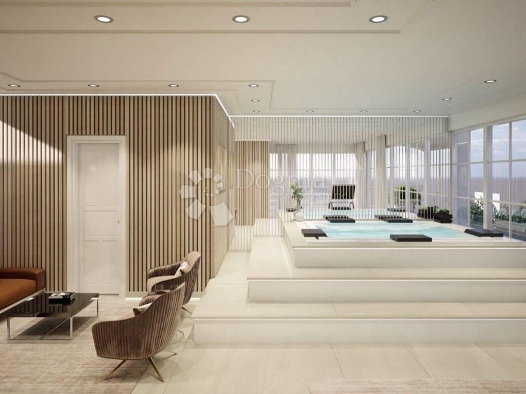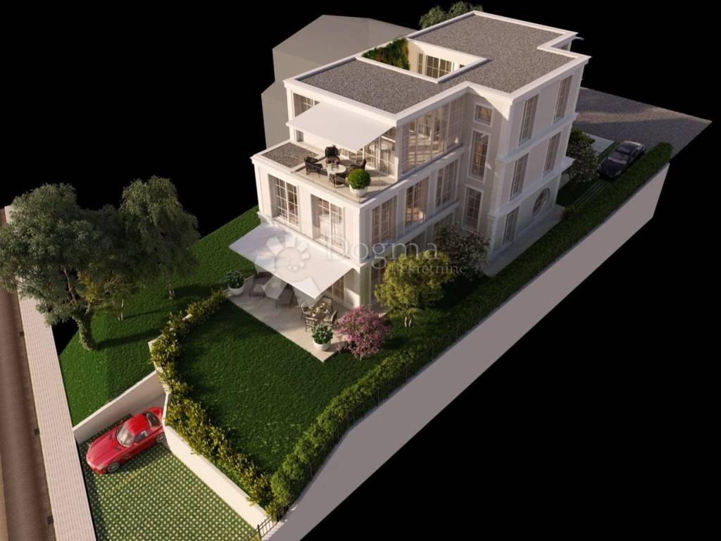 Gornja etaža rezervirana je za reprezentativnu, natkrivenu krovnu terasu, zamišljenu kao produžetak životnog prostora idealnu za vanjsku kuhinju, lounge zonu, sunčalište te ugradnju jacuzzija. Ovaj prostor pruža iznimnu razinu privatnosti i komfora, rijetko dostupnu u gradskim stanovima.