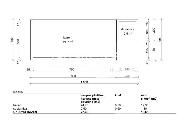 Zemljište je kategorizirano kao građevinsko, što omogućuje izgradnju objekata sukladno važećim prostornim planovima i propisima. Smještaj u ovoj regiji nudi odličnu priliku za izgradnju stambenih objekata, razvoj turističkih kapaciteta ili druge investicijske projekte u skladu s urbanističkim planom. Napravljen je idejni projekat za prizemnicu ukupne netto površine od 116m2 i bazen od 24m2. Priključak vode plaćen.