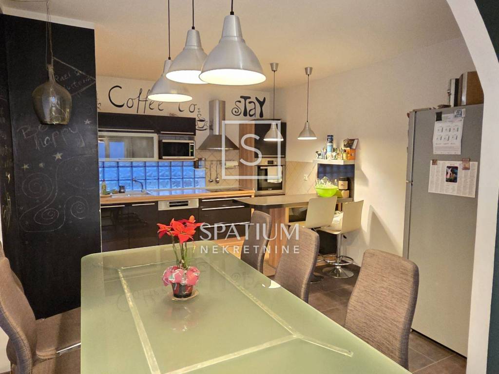 Uređena okućnica nudi: vrtnu kućicu , roštilj, vrt i dovoljno parkirnih mjesta.