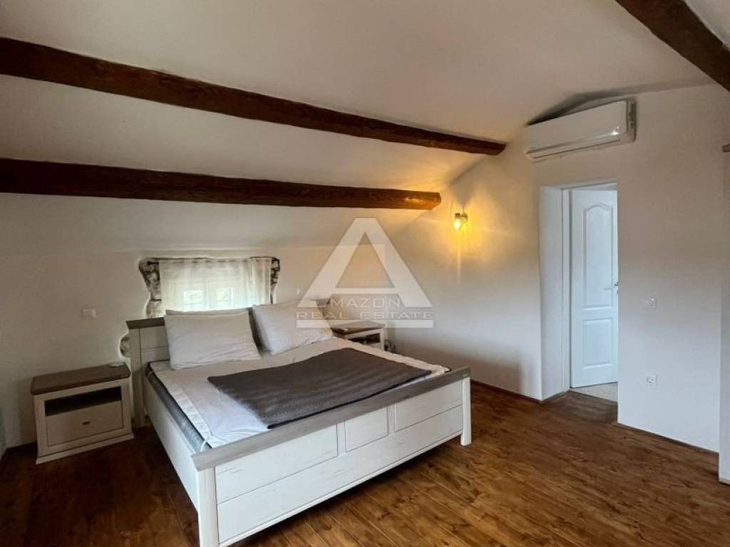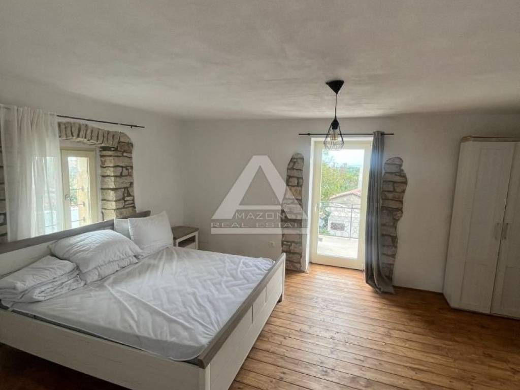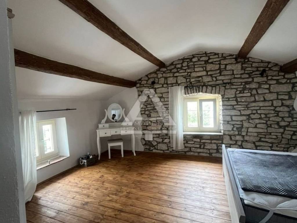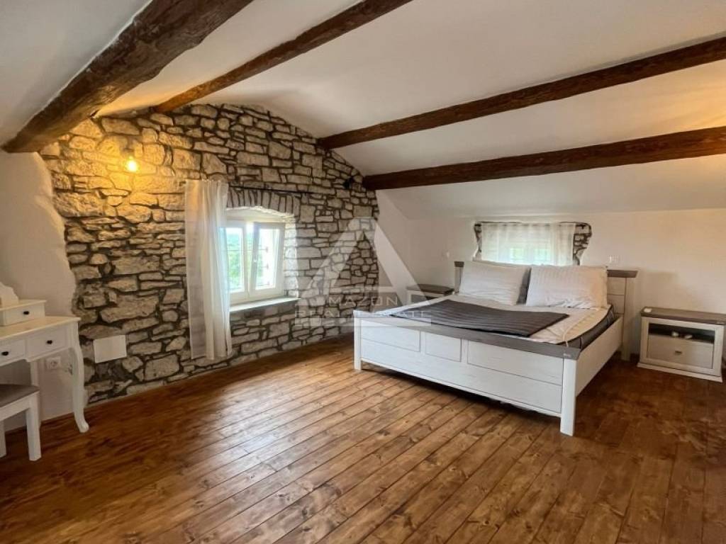 Poreč okolica na prodaju kamena kuća renovirana, sa bazenom. Kuća se sastoji od prizemlja gdje su kuhinja, dnevni boravak, terasa, kupaona, na prvom katu su dvije sobe, terasa, kupaona, na drugom katu su dvije sobe i kupaona. U dvorištu je parking, bazen, i roštilj. Kuća je namještena, a svaka prostorija ima klima uređaj za hlađenja i grijanje.