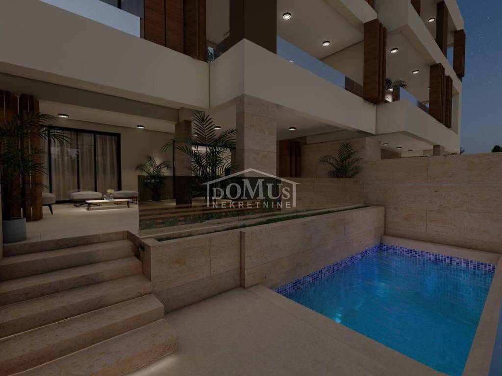 Primošten, luksuzno opremljen apartman 132,25 m² s garažom, parkingom, bazenom, panoramskim pogledom na more