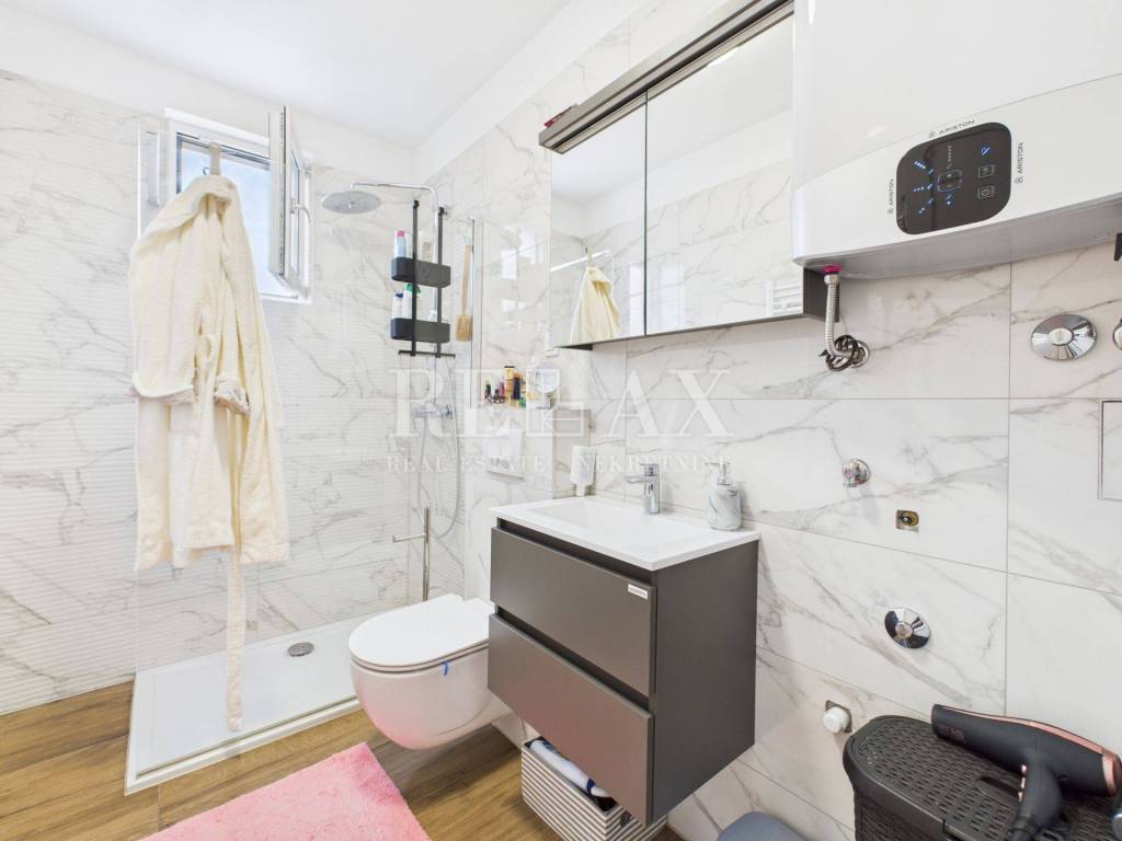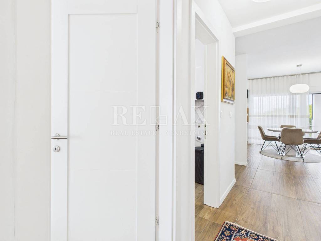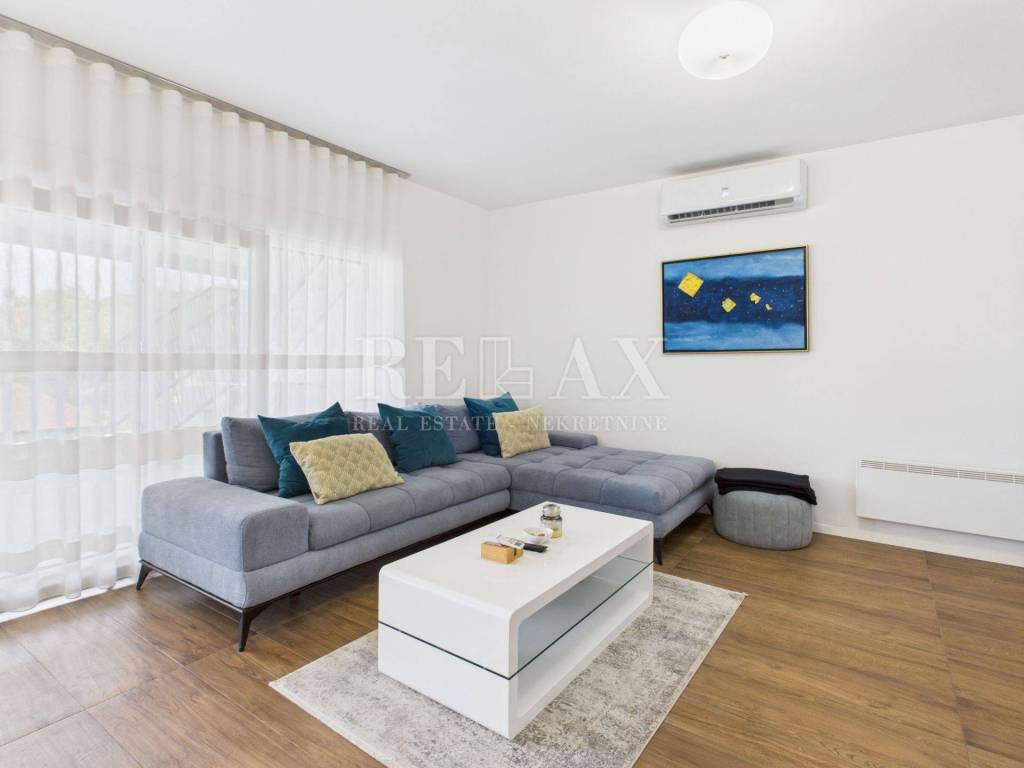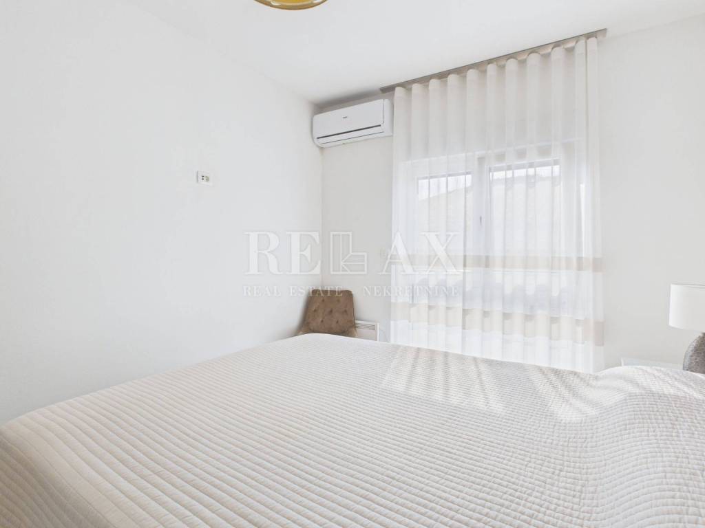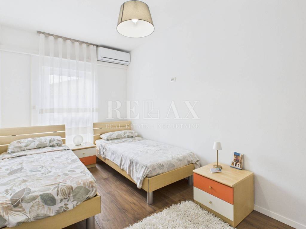 Stan se prodaje potpuno namješten i opremljen, s uključenim klima uređajima i norveškim radijatorima za dodatnu udobnost tijekom cijele godine. Pripadaju mu četiri parkirna mjesta na okućnici te jedno garažno mjesto, što osigurava dovoljno prostora za više vozila ili goste.
