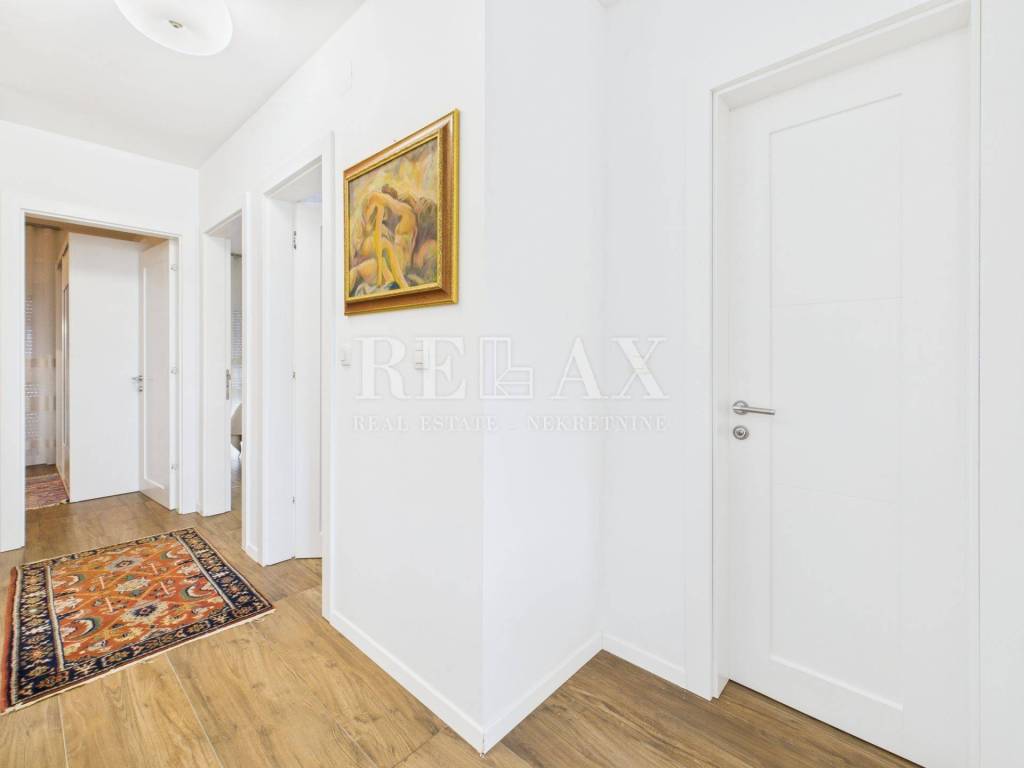 Stan ukupne stambene površine od 94,42 m² sastoji se od ulaznog predprostora sa stubištem, prostranog dnevnog boravka povezanog s kuhinjom i blagovaonicom, tri spavaće sobe, dvije kupaonice te hodnika. Zahvaljujući jugozapadnoj orijentaciji, stan obiluje prirodnom svjetlošću tijekom cijelog dana.