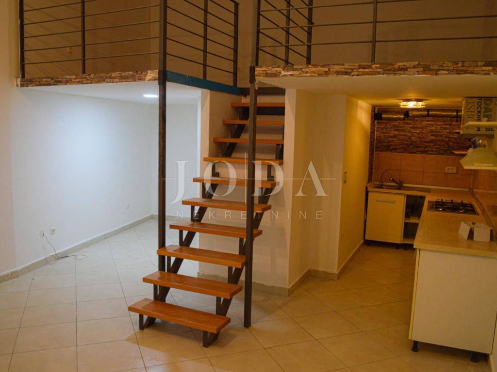 Stan je smješten u suterenu stambeno/poslovne zgrade, a sastoji se od dnevnog dijela kuhinje, dnevnog boravka i kupaonice te noćnog dijela (galerije), do kojeg dolazimo unutarnjim stepenicama.