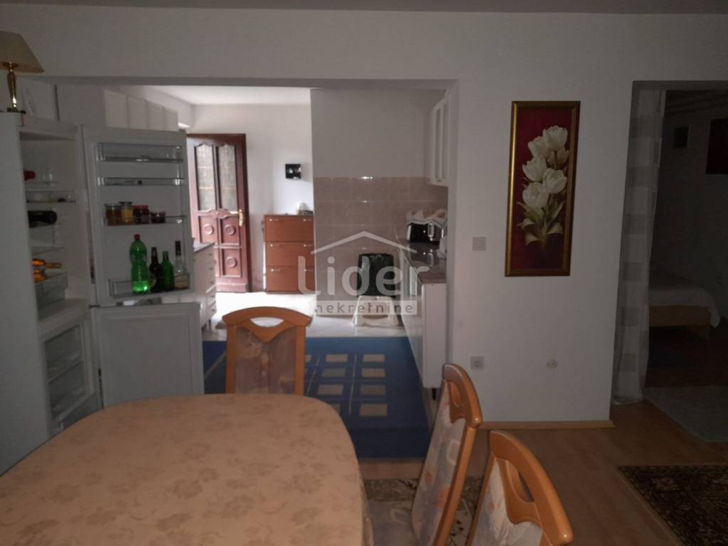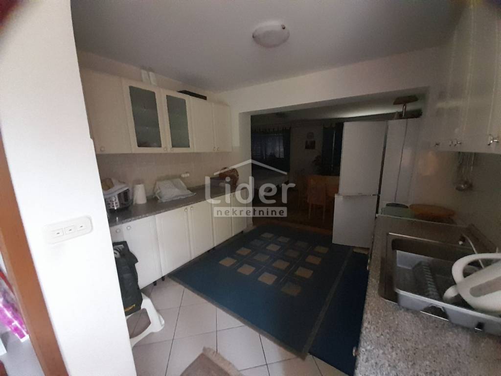 Kuća se sastoji od četiri etaže (S+VP+1+VP). U suterenu se nalazi potpuno namješten stan 1SB+DB, spreman za useljenje ili najam. Visoko prizemlje i prvi kat čine dva prostrana stana od 110m2 u visokoj ROH-BAU fazi. Iz stana na prvom katu postoji mogućnost proširenja stambenog prostora u visoko potkrovlje koje također ima vlastiti balkon okrenut na jug s lijepim pogledom na more. idealna prilika za uređenje prema vlastitim željama . Svaki stan ima svoj ulaz te balkone okrenute na jug i zapad.