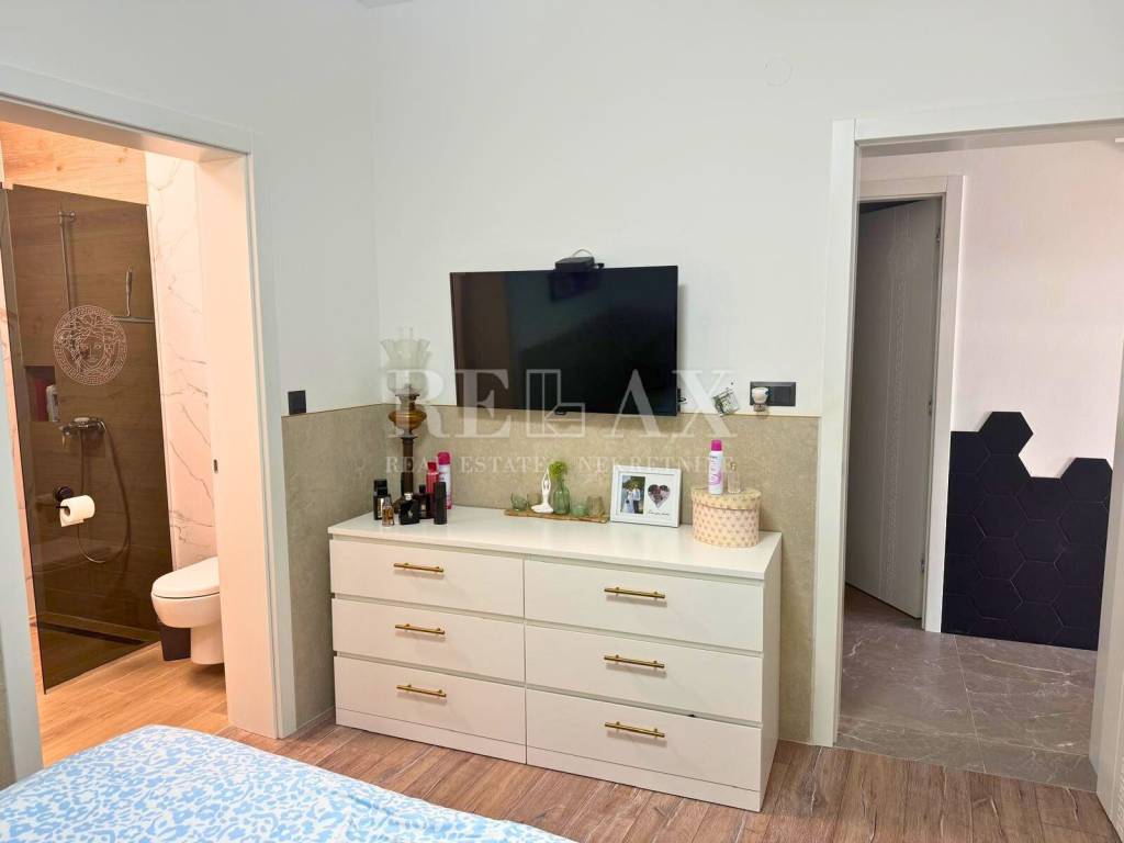 Na katu su smještene tri spavaće sobe, svaka s vlastitom kupaonicom, čime je osigurana privatnost za sve članove obitelji ili goste. S kata postoji izlaz na okućnicu, što dodatno povezuje unutarnji i vanjski prostor i povećava funkcionalnost nekretnine.