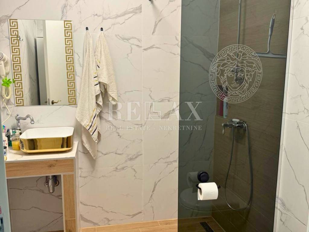 U prizemlju kuće nalazi se dnevni boravak povezan s kuhinjom i blagovaonicom, jedna spavaća soba s vlastitom kupaonicom, dodatni WC te praktična walk-in ostava površine 20 m². Interijer je uređen s naglaskom na kvalitetne materijale i detalje, što je vidljivo u odabiru podnih i zidnih obloga, opreme i namještaja.
