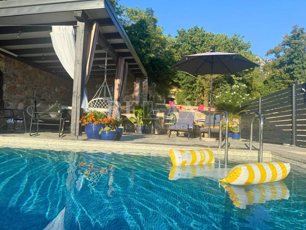 U mirnom okruženju mjesta Bribir prodaje se kvalitetno građena i u potpunosti namještena kuća s bazenom, ukupne stambene površine 150 m², smještena na lijepo uređenoj okućnici od 502 m². Nekretnina se prostire na prizemlje i kat te je osmišljena kao funkcionalna cjelina koja pruža visoku razinu komfora, privatnosti i ugodnog boravka tijekom cijele godine.