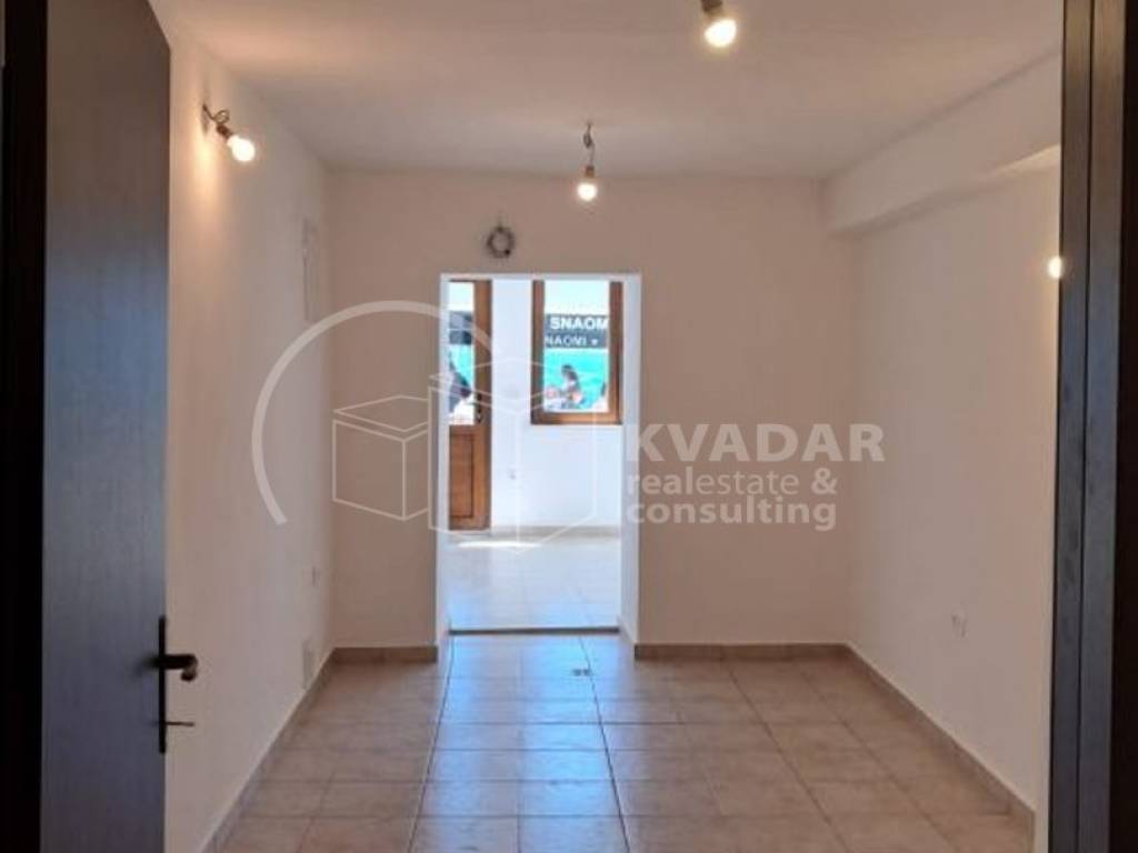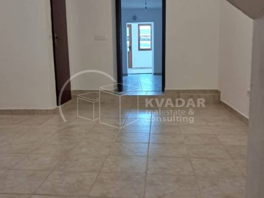 U prizemlju kuće nalazi se poslovni prostor od 49,82 m2, koji je potpuno novouređen i može se koristiti za ugostiteljske usluge, obzirom na lokaciju, stepenište od 9,69 m2, koje vodi do stana na 2.katu od 63,42 m2( pred ulaz, kuhinja sa blagovaonicom, dnevni boravak, velika kupaonica sa tuš kabinom, spavaća soba i velika lođa sa prekrasnim pogledom na more) te visoko potkrovlje od 57,62 m2.