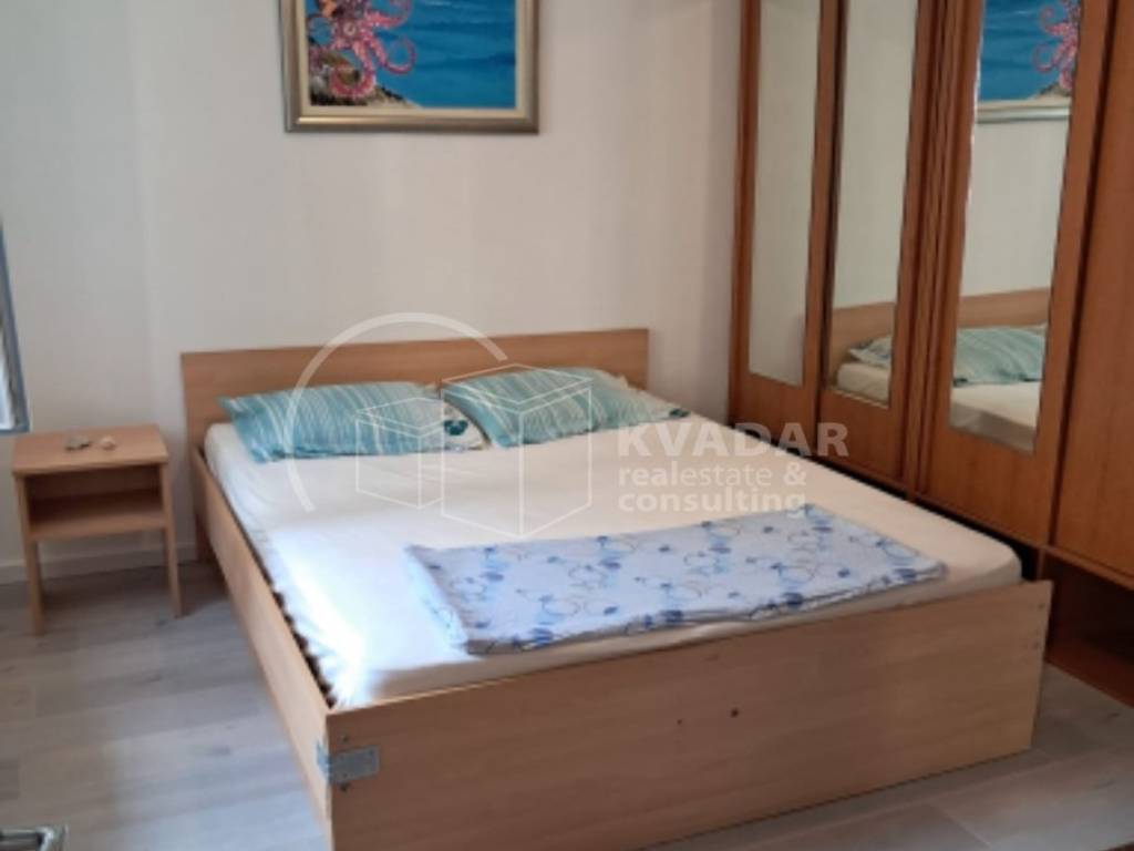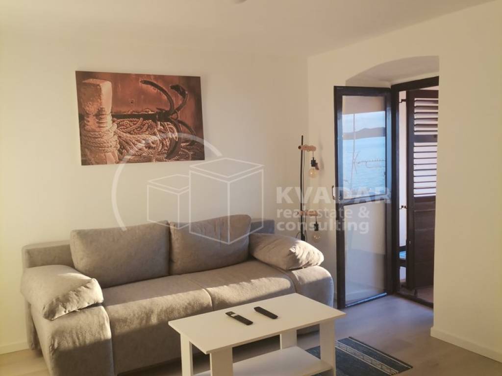 Stan na 2. katu je potpuno novouređen i sastoji se od kuhinje, kupaonice, spavaće sobe, dnevnog boravka s blagovaonicom iz koje se izlazi na veliku natkrivenu terasu sa koje se pruža prekrasan pogled na more.